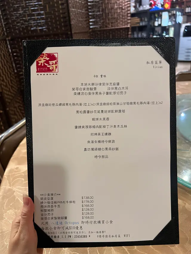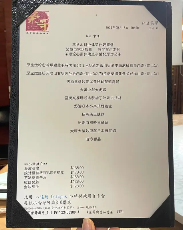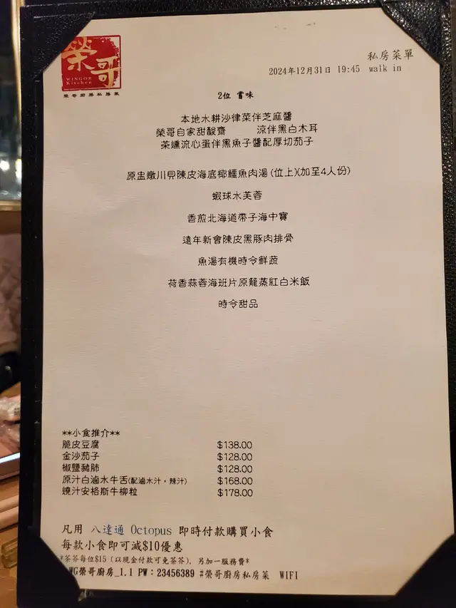 📍|隱世私房菜・驚喜體驗🍽️|三四人聚會首選💰|高性價比之選✨ 整體體驗:突然發現嘅私房菜!環境幽靜舒服,服務細心周到,上菜速度快,仲會等齊人先上菜,保證食材新鮮同最佳風味~絕對係同朋友慢慢傾、慢慢食嘅好地方!🍴 菜式逐一點評:**• 🥣 金銀菜煲豬肺湯湯色醇和,清甜潤喉,豬肺處理得乾淨,軟滑入味,飲完成個人暖笠笠 ❤️• 🍤 榮哥伴飯醬鮮蘆筍炒北海道帶子帶子大粒鮮甜,外香內嫩!配爽脆蘆筍同獨家醬汁,鹹香惹味,超好送飯 🍚• 🍯 蜜烤鰻鱺鰻魚外皮焦香,肉質油潤,蜜糖香甜唔膩,一串點夠喉 😋• 🐚 鹽焗花螺傳統鹽焗做法,螺肉鮮味突出,彈牙爽口!點少許醬油,鮮味更提升 👌• 🦀 雞油花雕蒸花蟹全場焦點!花蟹鮮甜,雞油同花雕酒香完美融合,蟹肉嫩滑,酒香回味無窮~• 🍗 招牌茶王燻雞雞皮燻香色澤靚,肉質嫩滑多汁,淡淡茶香滲入,食完齒頰留香 💯• 🌿 乾煸四季豆炒得乾身香口,配上鹹香肉末,微辣惹味,係一道滋味小炒!• 🌟 子薑皮蛋醬王南非鮑魚鮑魚厚身爽彈,醬王濃郁入味!配子薑同皮蛋,口感豐富,層次分明,完美壓軸 🎯📌 總結:食材新鮮,菜式有驚喜,價錢合理,服務貼心!係一個會想再encore嘅聚腳點~ …查看更多