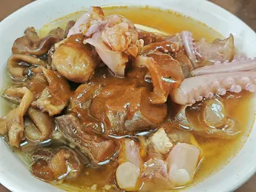 我点了一碗油面加鱿鱼加猪大肠加牛筋。汤底是清汤,需要自己调配,有特色辣酱和卤水汁。我认为这间店确实做得不错,虽然店铺不大,位置不多,只有两张桌。但是出品确实有水准。而且每一份的份量也不少。卤水做得很入味,价钱经济实惠,基本上没有挑剔的地方,除了环境相对比较简陋。