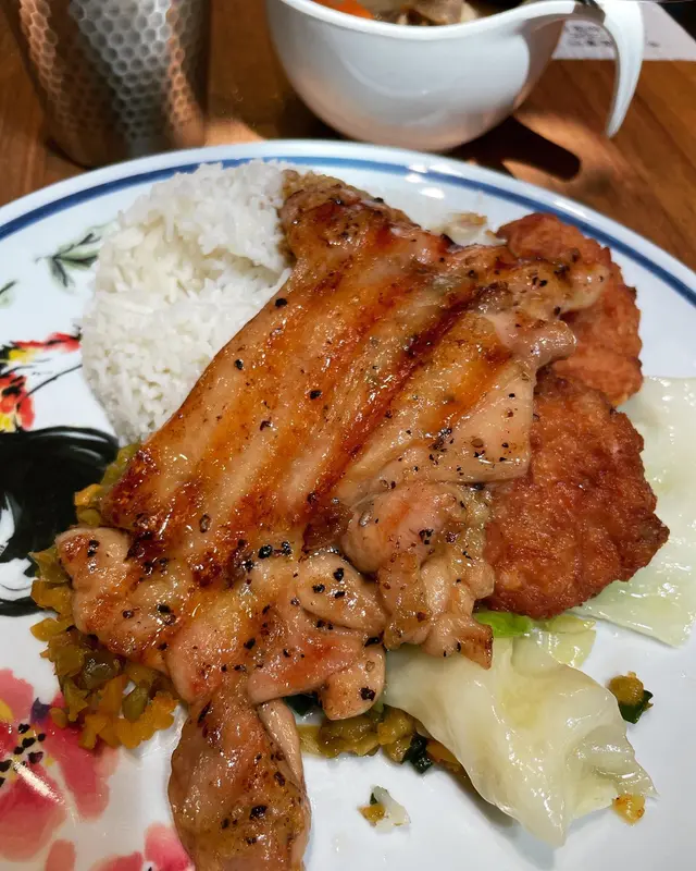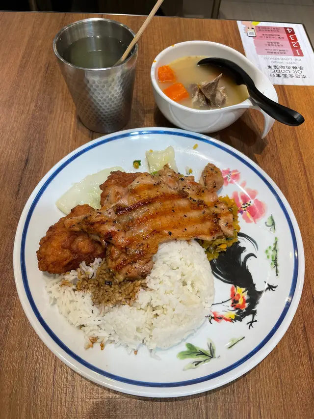 榮式燒雞扒專門店 (坑口明德商埸)。2025/July/Fri/14:17。2人共$146 無加一。見openrice無劣評,讚到啲雞扒世一咁,又脆又嫩,最後中伏咗,應該係我唔好彩,今天大厨心情不好。⭐️入咗自己黑名單。.................⭐️位置,隔涉商場內,唔算易揾。⭐️⭐️環境,感覺算乾淨,空間都可以。⭐️⭐️服務,招呼有禮。.................⭐️榮式雞扒1件$52叻沙米粉$6共$58,件雞扒完全似用水烚熟,跟住係咁意過一過火,無色無味又細塊就$52,加錢個叻沙有色但完全無味。⭐️跟餐+8椰汁冰,椰漿溝水加幾粒冰。⭐️鱆魚蓮藕餅2件湯檬$52,件餅硬到呢,炸過火,碗檬有雞粉味嘅,仲有小小小小芽菜及1個豆卜,整體份量太少。⭐️⭐️跟餐+3凍奶茶,最正常。⭐️炸洋蔥圈$25,又濃又黑,過唒火。.................將軍澳 坑口明德商場 地下 4-6舖坑口港鐵站 B1出口(我識行都起碼行10分鐘)..................…查看更多