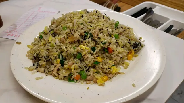 經典欖菜肉碎炒飯 魚堅日記等級42022-10-171K 瀏覽 關注 午市快餐🥢欖菜肉碎炒飯包熱飲$49 欖菜鹹鹹地好惹味,肉碎唔會太肥,配料有炒蛋碎同雜豆,五顏六色賣相靚仔,即炒熱辣辣香口惹味,炒得乾身唔油膩,飯量充足☕熱檸茶有三片檸檬,檸檬新鮮,不過茶味過淡懷舊茶餐廳,橙色花花牆磚,再配埋呢款經典嘅欖菜肉碎炒飯,都幾好feel🤭😝$49午市快餐,價格定位中規中矩,另外牆上貼住有個全日茶餐好似幾抵食🧐,$36有交易,下次試下先😛魚堅總評性價比 3.5👍(以5👍為滿分)…查看更多+ 1以上食評乃用戶個人意見 , 並不代表OpenRice之觀點。讚好分享經典欖菜肉碎炒飯 榮樂茶餐廳 https://s.openrice.com/QrbT0rk9500檢舉 張貼 評分4味道3環境3服務3衛生3抵食用餐途徑堂食用餐時段午餐