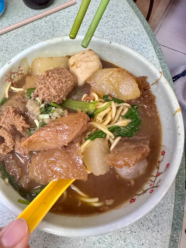 今日嚟又嚟到銅鑼灣榮記車仔麵,16:30到依然好多客,果然係榮記,我都係長期客戶☺️,今日就叫咗個五餸麵,牛肺 :入味,唔會太腍,完全冇內臟嘅異味,牛筋:入味,軟腍得嚟唔會冇咗咬口,只係頭呢兩道菜,已經好過好多牛雜粉麵檔,豬紅:而家越來越少呢一種豬紅,應該係新鮮豬紅,夠入味,腍滑爽口,真材實料,魚肉春卷:有魚香味,係兒時食過嘅味道,墨魚頭:新鮮,爽脆,好味,粗麵:熟到剛剛好唔會腍,冇鹼水味,湯低,超濃郁,滷水味夠,湯頭應該仲有其他嘢,總之好味,色香味俱全,果然係榮記,直得咁多人嚟食👍🏻仲有杯豆漿都好好飲☺️