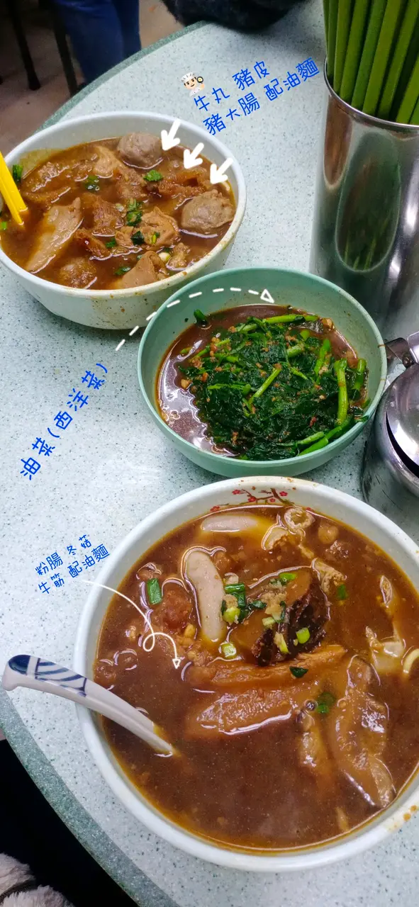 收工同男朋友去CWB逛,睇下晚餐邊到食突然想食牛筋,我地就衝過嚟呢到食晚市收工時段,大約有5-6個客排緊隊排一陣就入得,因為車仔麵通常都快食快走我地各自叫左3餸食呢到d油菜得一款西洋菜,冇第二款菜菜份量係正常足料🍜我就食冬菇,粉腸,牛筋配油麵佢地d湯好濃,同埋本身個湯落左勁少bb 辣唔會辣到出汗,但係食完好暖個油麵唔似出面有d鋪係用勁粗身呢到係用中size果款粗幾好味哦,因為口感夠彈d餸菜都足料,至少每款有2-3件冬菇好厚身,粉腸就麻麻地,過冧了牛筋係多筋少肉的,但煮得又係過冧了🍜男朋友食豬大腸,豬皮,牛丸配油麵我試左粒牛丸,牛丸有d細粒,冇咩特別整體嚟講我覺得湯係好味,油麵都好彈口不過餸菜就普通,但份量係足料同價錢合理查看更多