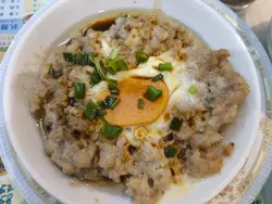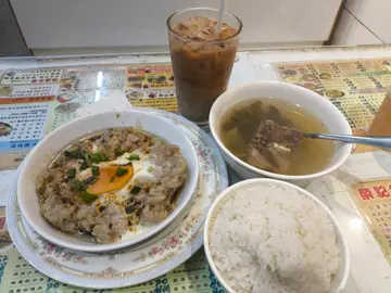 今晚就嚟到呢間位於北角渣華道既榮記餐廳小廚食個晚飯,最鍾意佢地既咸蛋蒸肉餅飯,晚餐時段到店,坐滿6成食客,揾到張卡位空枱就坐低睇下個牆上既今日晚餐,點知今晚有咸蛋蒸肉餅,就立刻人手落單點咗呢個晚餐,等咗一陣就有得食,肉餅份量適中,肉質唔硬,腍腍地口感唔錯,味道都啱口味,仲有跟個菜乾豬骨例湯,幾好飲。[米饭]口味:🥚🥚🥚[薄荷]环境:🥚🥚🥚[服务铃]服务:🥚🥚🥚[糖果]性价比:🥚🥚🥚