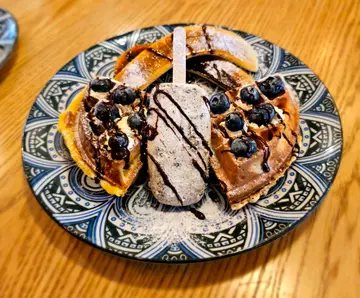 今日難得入去屯門探朋友,就搵個靜靜嘅地方坐下。大約正午12點到埗,同場另外兩張枱都有客人(即係唔算多人)。現場環境設有多部hifi….備有黑膠唱片及普通唱片點歌服務。老闆好樂意同你傾偈(如果你想回應佢嘅話)。枱面有提示,要求食客餐後自己處理紙巾及飲管。我哋Order 咗Mocha & Cappuccino(沒有朱古力粉作topping). 咖啡係nutty 感較早,外面純飲咖啡店較少使用(味道與某連鎖店”PO”字頭相若)。而Main course 叫咗本日午餐,即All Day Breakfast 及 卡邦尼意粉,可惜意粉較乾,近乎沒有卡邦尼汁,亦都冇乜忌廉味。而All day breakfast 亦都冇乜驚喜,只係個炒蛋炒得好滑。最後再叫多個甜品玉桂蘋果waffle….窩夫質感煙韌,唔係空心hea你嗰啲,加分。而個玉桂蘋果醬味道都OK,旁邊加條疑似雪條,擺明係想食客打卡,但口感麻麻哋,隨時係把20分鐘都唔會點溶化用嗰種「雪條」。…查看更多