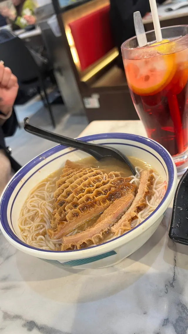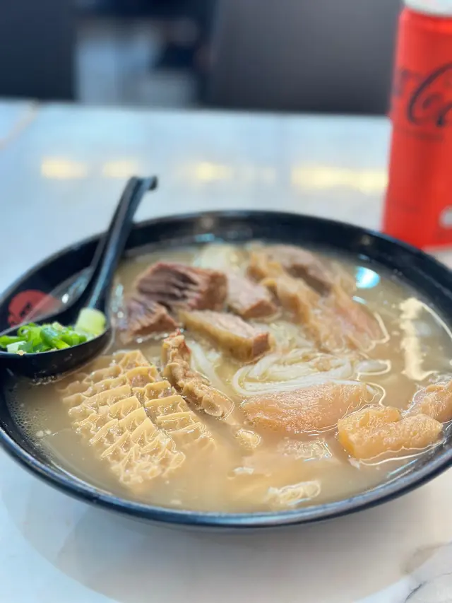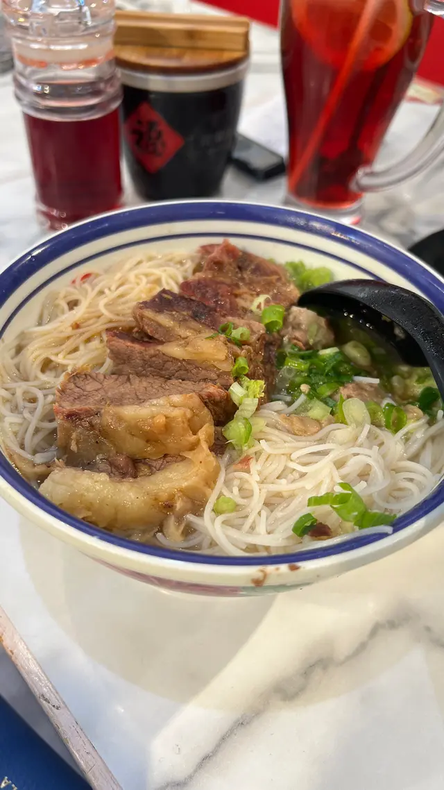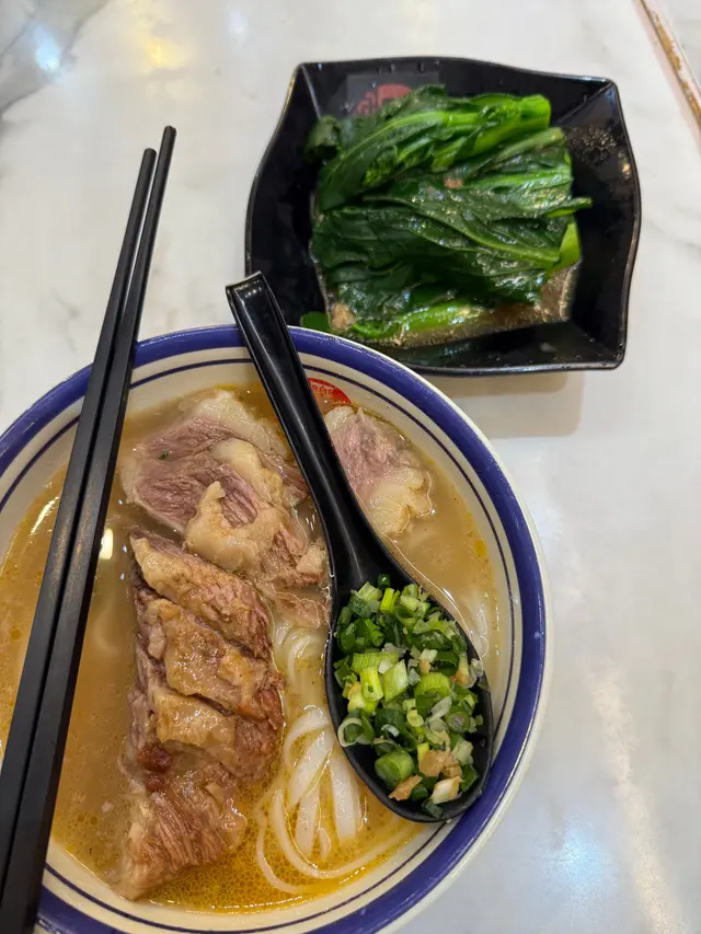 晚餐抵食之選😋經過見到聞到好香牛腩味🤤作為牛腩愛好者當然係無法抗拒啦😋決定行入去試試佢!舖頭乾淨企理,空間感十足!仲有得自助斟水~面底除咗河粉之外,亦可以揀幼麵、粗麵、米粉或者米線。雙拼加$10 ,加底淨係加$8,都幾抵食喎~另外,加$13仲可以加多碟菜🥬牛腩河(💰$39)|😋:4.5/5牛腩嘅牛味非常濃,湯底惹味但唔會過鹹,河粉亦唔會太腍,軟硬及份量適中😍推薦食得辣嘅朋友仔加幾滴辣油之後,更加惹味呀🤫菜心(💰+$13)|😋:4.7/5大大碟菜心,個人鍾意腩汁上多過蠔油🫶🏻菜心煮得啱啱好,好新鮮😍埋單總共💰$52,食得飽又滿足👅…查看更多