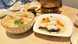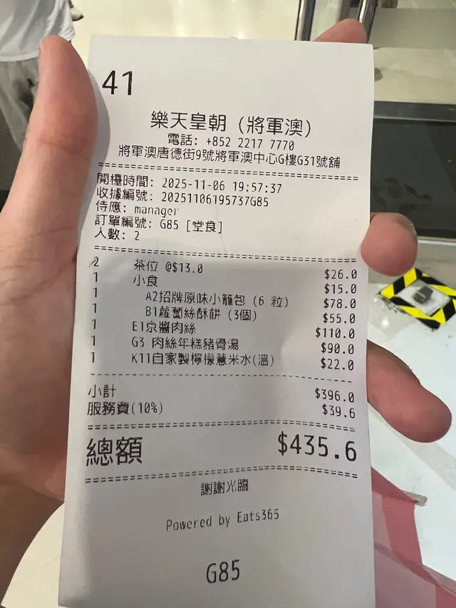 將軍澳中心有好多餐廳,但如果想食好食的上海菜,不可不提「樂天皇朝」。🥟 1. 招牌原味小籠包(6粒)樂天皇朝的鎮店之寶,非「招牌原味小籠包」莫屬。原味小籠包色澤潔白通透,飽滿玲瓏,食時原粒小籠包放入口中,滿滿的肉汁,一口咬下即爆發鮮美肉湯,包皮夠薄但都不易穿。此外,餐廳也有八色小籠包系列,原味以外還包括:蟹粉、芝士、蒜香、人參、黑松露、鵝肝、糟溜絲瓜及川味,適合打卡拍照。第一次來的話,建議先嚐經典原味,下次再試八味。🍲 2. 蝦仁酸辣湯同樣是經典川滬融合菜式,高湯作基礎,調和番茄酸味、胡椒和辣椒的辛香,搭配彈牙蝦仁、豆腐絲、冬菇等豐富配料,每一口都層次分明。對於嗜辣者,這湯款相對溫和,大眾容易接受。🥘 3. 雪菜鹹肉炒年糕年糕帶點厚身、爽滑不黏牙,而且炒得乾身但不油膩。鹹肉鹹香十足,其鹹味浸透於年糕,整體口感煙韌有嚼勁,非常好食。🍡 4. 酒釀芋圓甜品方面,我們叫了酒釀芋圓。以米酒製作的甜湯為底,配合芋圓及桂花點綴,湯底清甜而帶淡淡酒香,芋圓外柔內彈,煙韌不膩。推薦給喜歡中菜、滬菜、小籠包愛好者,樂天皇朝是個好選擇。…查看更多
