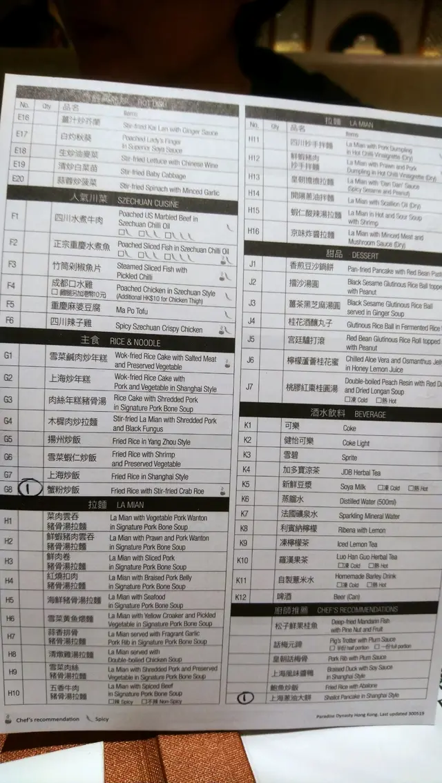 同家人吃飯,走到尖沙咀的樂天皇朝,樂天皇朝食品選擇眾多單看選單便覺密密麻麻。因為好想吃他們的八色小籠包!所以先叫一籠。有八種不同口味:原味、人蔘、鵝肝、黑松露、蒜蓉、芝士、麻辣及蟹粉。原味勝在夠傳統,肉味濃郁。人蔘味充足,入口隨即湧出。鵝肝油脂味留於口中,非常滿足。黑松露味濃厚,且有再嚐的意欲。芝士不算很濃,吃完就是沒太強烈芝士感覺。蟹粉是我強烈推介的款式,蟹膏好像充滿口中。蒜香:蒜香味會停留口中,一試無妨。麻辣帶一丁點辣香味,有點像韓式品味。菜黃魚羹用菜粒與魚肉碎混在一起做成羹,菜粒與魚肉份量十足,略略是味道偏濃,但勝在用料十足。無錫鮮肉鍋貼底部煎得脆口,食落肉嫩多汁,好像尋回童年時候小檔美食的回憶。揚州糟溜滑魚片的魚片非常入味,當中夾雜點點酒醉香味道,口感味道特別,但還是伴飯吃為佳,所以追加了一碗白飯。…查看更多