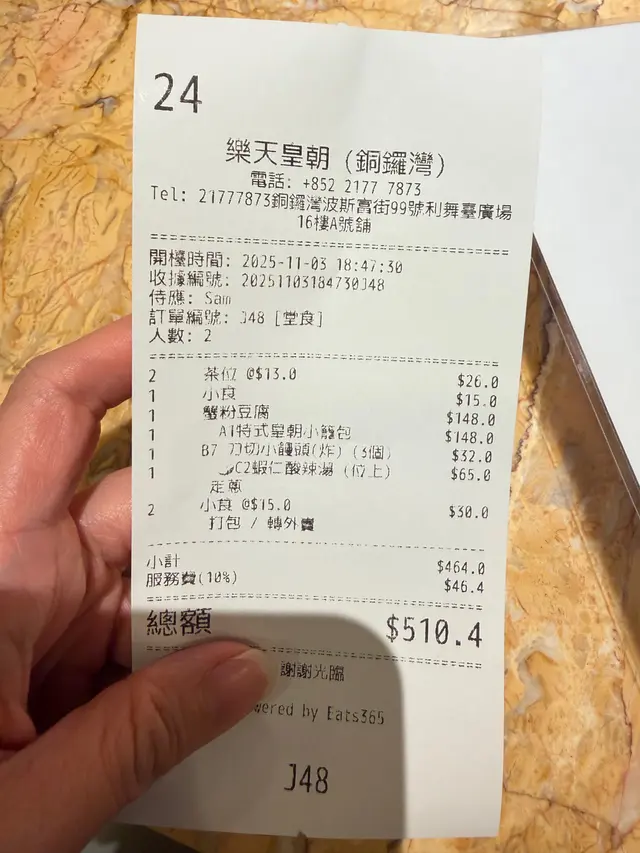 樂天皇朝 (利舞臺廣場) (銅鑼灣) 網址: https://s.openrice.com/QrbS065SD00 地址: 香港銅鑼灣波斯富街99號利舞臺廣場16樓A號舖 電話: +852 21777873