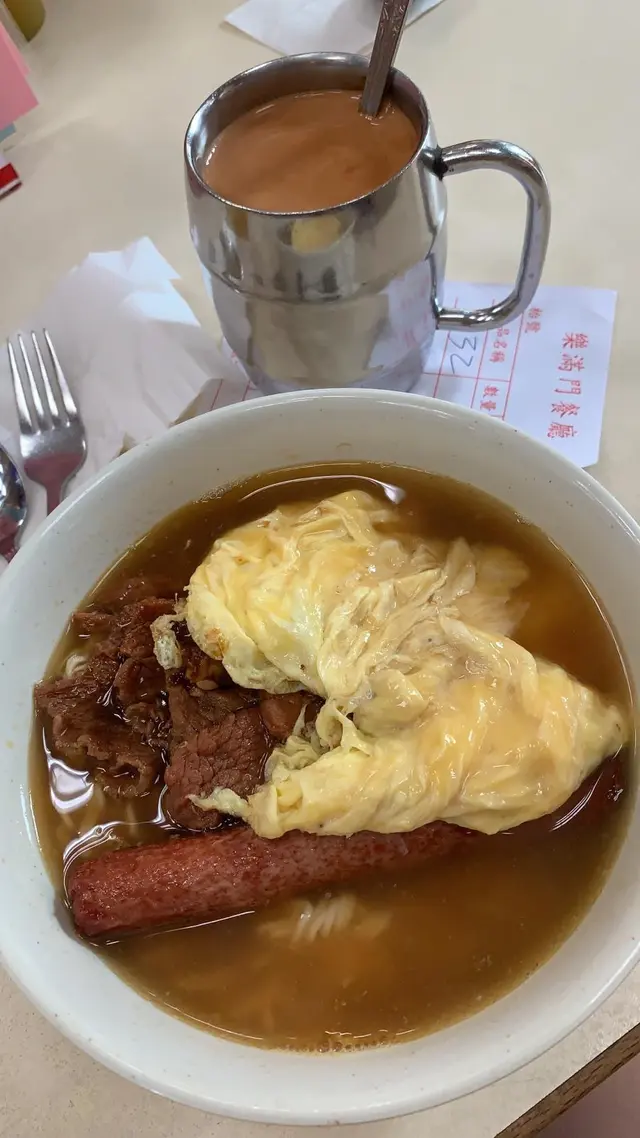 以前聯和墟最好食既沙嗲牛肉麵係叮叮但依家佢已經唔好食了....下午茶我突然間又想食沙嗲牛肉麵搵左一陣....喺聯和墟行下行下搵到呢間...外面好懷舊...但門口望到佢入面鋪都坐左唔少人喺度於是我就行左入去真係一間好舊式茶餐廳...睇左餐牌...3餸麵加埋野飲先$32好抵叫左個沙嗲牛肉,腸仔,炒蛋 麵熱茶走😊沙嗲牛肉好濃 好入味😮👍🏻👍🏻👍🏻麵唔差, 好彩唔係用福字麵!😬😬讚👍🏻👍🏻聯和墟有間開左一段時間既冰室...用福字麵!難食到呢...👎🏻👎🏻所以呢間正!👍🏻但腸仔就差d la....太咸同燶左d...炒蛋正正常常👌🏻👌🏻茶走都幾好👍🏻👍🏻原來有時舊鋪係幾好食👍🏻👍🏻👍🏻可一可再👍🏻👍🏻👎🏻查看更多