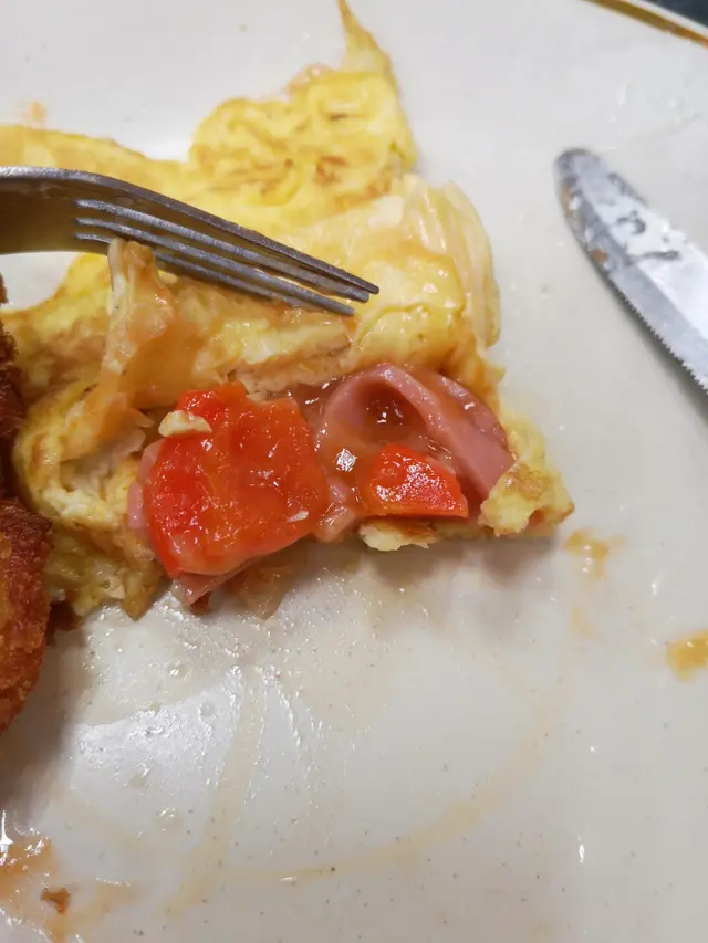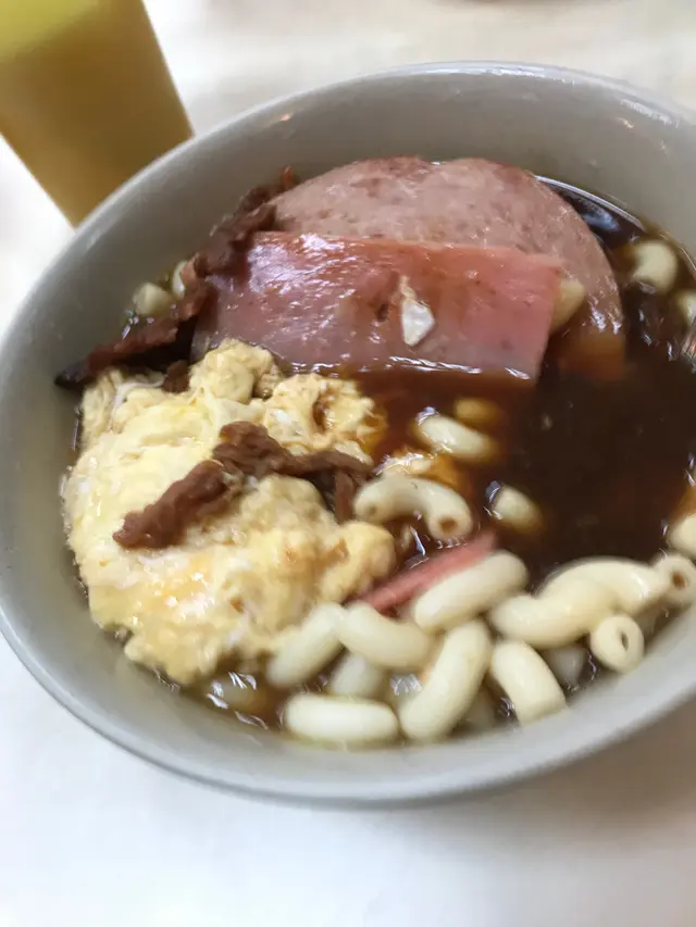 要知道一間茶餐廳出品如何,我認為必定要試試它的沙嗲牛肉麵,這天我便來這間非常舊式茶餐廳吃早餐單看裝飾已感到它的年代感4款早餐統一價格$33,我選了B餐,沙嗲牛肉麵配火腿奄列及牛油餐包,喝熱好立克沙嗲牛肉麵一上檯,湯底顏色非常濃,牛肉也不少,拌勻後吃了一口麵條,麵底不是用福麵,應該是出前一丁,不會過淋且麵質仍有口感,軟硬適中,好吃;牛肉則不過不失,奄得夠淋身入味,整體我覺得不錯火腿奄列奄列有驚喜,蛋煎得香口薄身,裡面有大量火腿絲,重點是,火腿絲帶有羅宋湯味的蕃茄汁,這是小時候吃火腿奄列的味道,後來吃的火腿奄列通常只有火腿絲,沒有了惹味蕃茄汁,是兒時回憶,好開心牛油餐包餐包非常鬆軟,可惜不夠熱,牛油則是普通人造牛油,正常味道最後配上一杯熱好立克,尋回兒時味道的火腿奄列讓我一整天都很快樂查看更多