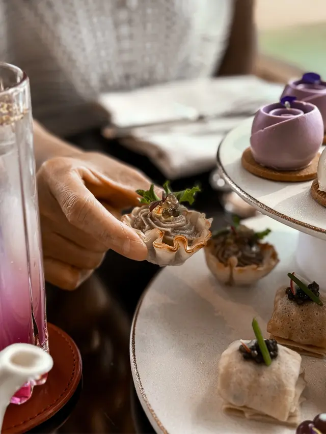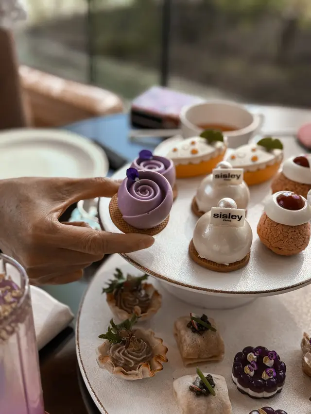 難得的好天氣 來個美美下午茶轉換下心情最近港麗酒店樂聚廊跟法國美容品牌聯乘以天然植萃元素作食材靈感打造亮麗奪目的下午茶各式鹹甜美點以雙層白色金邊圓碟呈上食材融合銀杏 豆乳 甜馬鬱蘭 薰衣草等從舌尖煥發肌膚亮麗光采 ~. “Conrad Sisley Luminous Bloom Afternoon Tea .✺ sᴀᴠᴏᴜʀɪᴇs ✺๑ 鵝肝慕絲配薰衣草砵酒啫喱泡芙๑ 龍蝦魚子醬法式薄餅๑ 茄子銀杏沙律撻๑ 薰衣草忌廉芝士凍賣相最為吸引的薰衣草忌廉芝士凍私心推薦小小薄餅中裹著鮮爽龍蝦沙律topping 以魚子醬點綴 口感豐富!✺ sᴡᴇᴇᴛs ✺๑ 豆乳銀杏慕絲๑ 蜂蜜乳酪慕絲๑ 馬鞭草蘋果泡芙๑ 玫瑰薰衣草朱古力慕絲豆乳銀杏慕絲透着珍珠般明亮光澤口感順滑 豆乳香味突出最 ig-able 莫過於玫瑰薰衣草朱古力慕絲以夢幻紫色吸引眼球 質感輕盈很不錯!✺ sᴄᴏɴᴇs ✺๑ 原味鬆餅及提子鬆餅 豆乳德文郡忌廉及自家製士多啤梨果醬下午茶不可或缺的英式鬆餅 每日新鮮烘焗 外層金黃香脆 入口軟綿鬆化抹上混入豆乳的德文郡忌廉 清新幸福滋味 ✺ ʙᴇᴠᴇʀɢᴇs ✺๑ 紫魅檸香薰衣草餐飲除意式咖啡或 TWG 茗茶外還特地推出了一款夢幻賣相特調以檸檬汁 薰衣草糖漿及梳打水調製出美美漸層入口清爽解膩 …查看更多