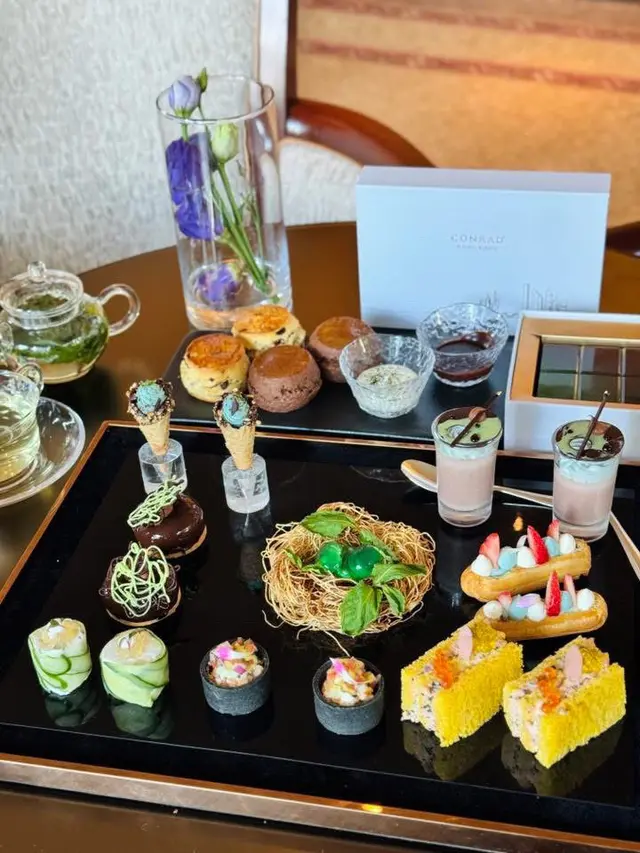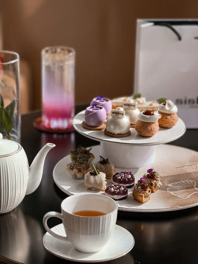 難得的好天氣 來個美美下午茶轉換下心情最近港麗酒店樂聚廊跟法國美容品牌聯乘以天然植萃元素作食材靈感打造亮麗奪目的下午茶各式鹹甜美點以雙層白色金邊圓碟呈上食材融合銀杏 豆乳 甜馬鬱蘭 薰衣草等從舌尖煥發肌膚亮麗光采 ~. “Conrad Sisley Luminous Bloom Afternoon Tea .✺ sᴀᴠᴏᴜʀɪᴇs ✺๑ 鵝肝慕絲配薰衣草砵酒啫喱泡芙๑ 龍蝦魚子醬法式薄餅๑ 茄子銀杏沙律撻๑ 薰衣草忌廉芝士凍賣相最為吸引的薰衣草忌廉芝士凍私心推薦小小薄餅中裹著鮮爽龍蝦沙律topping 以魚子醬點綴 口感豐富!✺ sᴡᴇᴇᴛs ✺๑ 豆乳銀杏慕絲๑ 蜂蜜乳酪慕絲๑ 馬鞭草蘋果泡芙๑ 玫瑰薰衣草朱古力慕絲豆乳銀杏慕絲透着珍珠般明亮光澤口感順滑 豆乳香味突出最 ig-able 莫過於玫瑰薰衣草朱古力慕絲以夢幻紫色吸引眼球 質感輕盈很不錯!✺ sᴄᴏɴᴇs ✺๑ 原味鬆餅及提子鬆餅 豆乳德文郡忌廉及自家製士多啤梨果醬下午茶不可或缺的英式鬆餅 每日新鮮烘焗 外層金黃香脆 入口軟綿鬆化抹上混入豆乳的德文郡忌廉 清新幸福滋味 ✺ ʙᴇᴠᴇʀɢᴇs ✺๑ 紫魅檸香薰衣草餐飲除意式咖啡或 TWG 茗茶外還特地推出了一款夢幻賣相特調以檸檬汁 薰衣草糖漿及梳打水調製出美美漸層入口清爽解膩 …查看更多