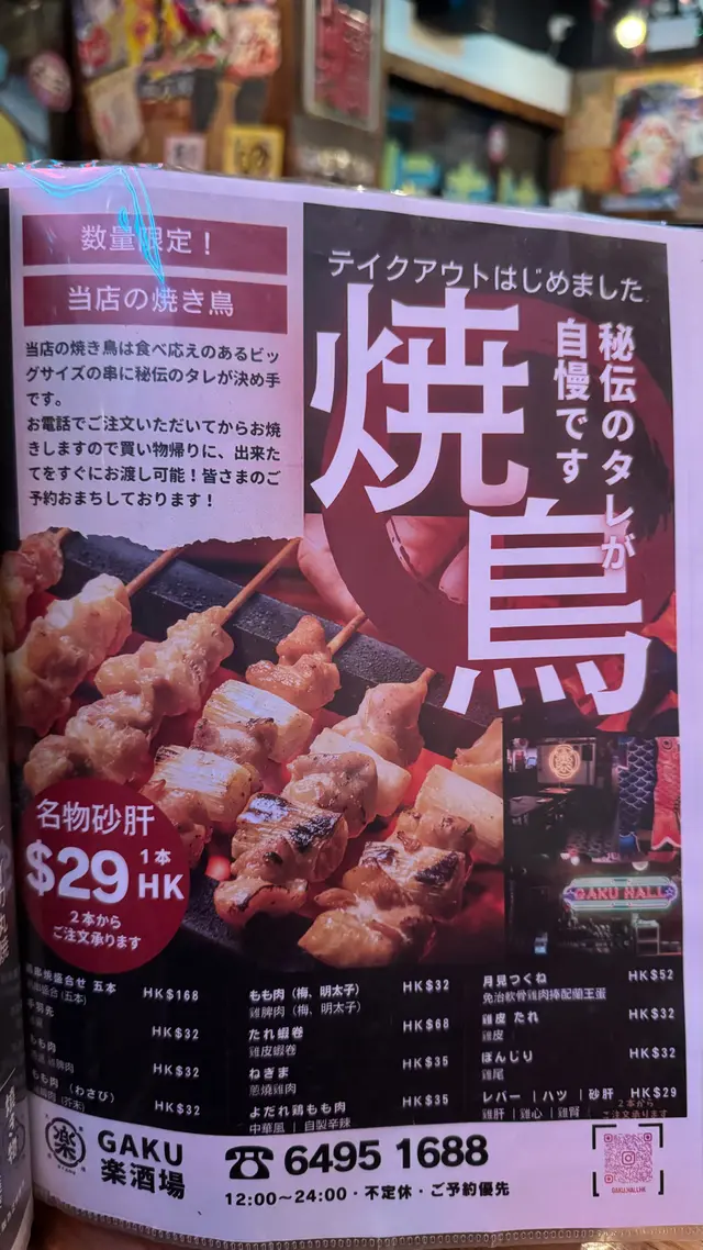 樂酒場 がくさかば (尖沙咀) 網上訂座享特別優惠兼賺Rice Dollars 網址: https://s.openrice.com/QrbS0MViB00 地址: 香港尖沙咀白蘭軒道1號麗東大廈地下H & J號舖及閣樓 電話: +852 64951688