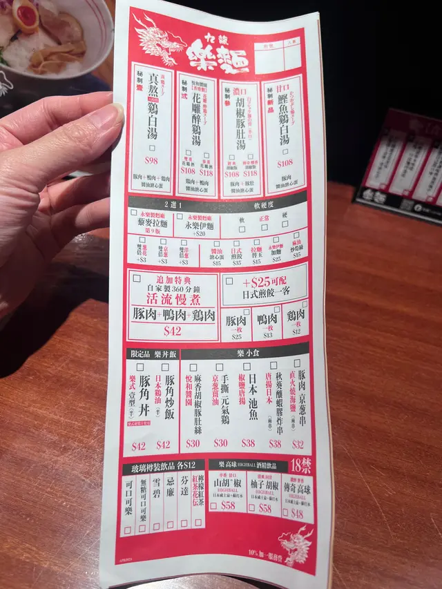 收工食飯想快靚正,喺新都會搵到一間唔洗排隊嘅樂麵!但...今次中咗伏😭。【限定】超重味鮮豚背脂厚切五花肉赤麵豉湯+鳳尾雲吞,湯底真係好咸,五花肉睇落肥瘦適中,好期待,但食落肉竟然好柴!加$18嘅鳳尾雲吞細細隻,味道冇咩特別,唔太抵食。【直火燒】12小時自製秘汁 溫泉蛋薄切梅花豚飯,豚肉都係硬身嘅,秘汁分量少,飯底完全拌唔均。成餐入面最驚喜只有粒溏心蛋🥚✨