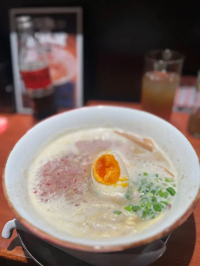 日系向濃厚雞白湯好飲到可以飲晒成碗雖然中途師傅出咗去冇人整餐,但只要通知聲店員就會即刻出嚟整到醬油溏心蛋嘅醬油味略嫌不足,雞油味好出好香,重口味人士必試。肉嗰方面少少「鞋」但都保留到鮮味。麵質選取正常硬度都夠,普通拉麵就足夠掛汁。下次會再試其他。查看更多