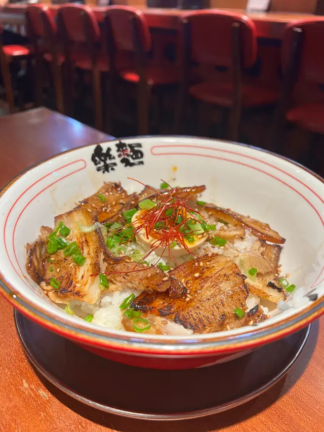 收工食飯想快靚正,喺新都會搵到一間唔洗排隊嘅樂麵!但...今次中咗伏😭。【限定】超重味鮮豚背脂厚切五花肉赤麵豉湯+鳳尾雲吞,湯底真係好咸,五花肉睇落肥瘦適中,好期待,但食落肉竟然好柴!加$18嘅鳳尾雲吞細細隻,味道冇咩特別,唔太抵食。【直火燒】12小時自製秘汁 溫泉蛋薄切梅花豚飯,豚肉都係硬身嘅,秘汁分量少,飯底完全拌唔均。成餐入面最驚喜只有粒溏心蛋🥚✨查看更多