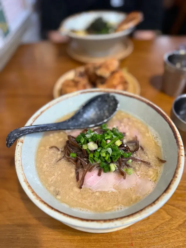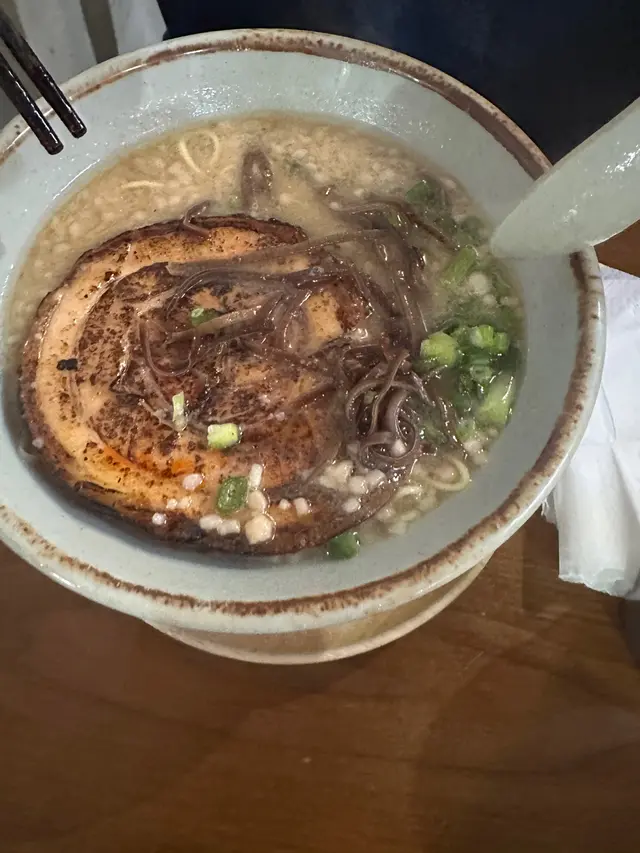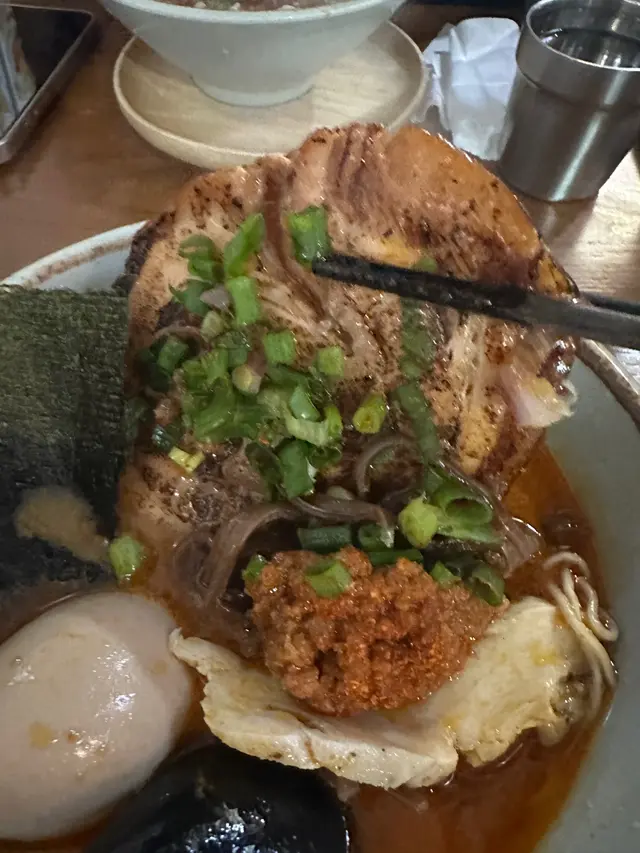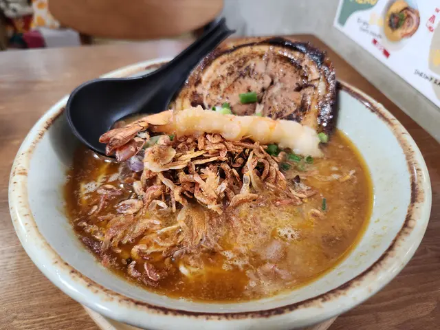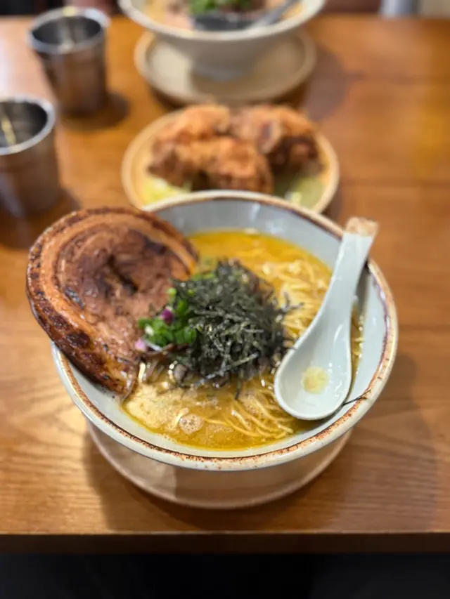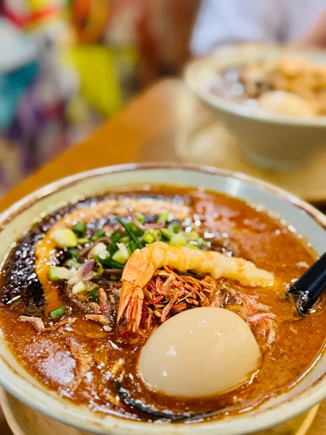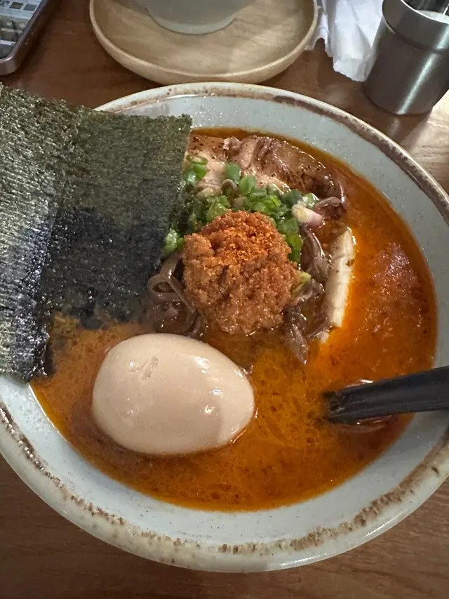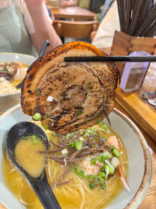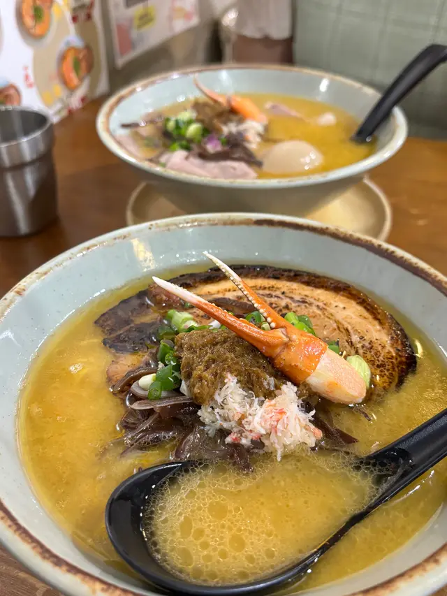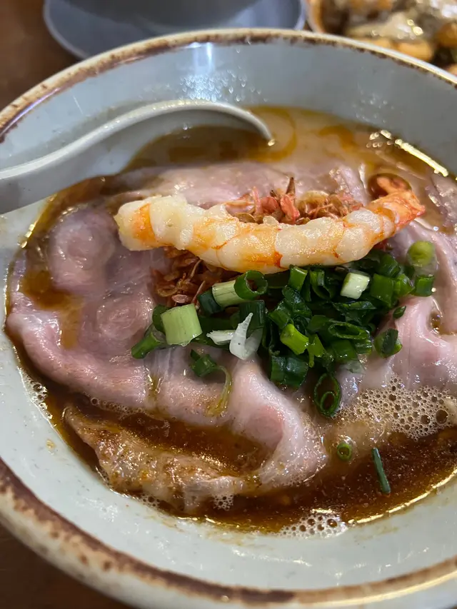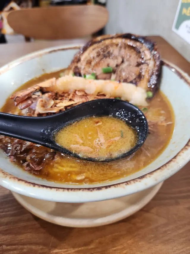 呢間日式拉麵店湯底自家熬製濃郁,麵條彈牙,環境簡單舒適,滿滿日本小店feel,適合夜晚嚟食一碗熱辣辣解饞!海老慢煮梅肉叉燒拉麵肥美到飛起!湯底海老鮮甜濃郁慢煮梅肉叉燒超級肥美,入口即化,油脂香滑唔膩,滿口豬肉嘅甘香!麵條Q彈裹汁,海老頭湯底加持海鮮味更爆湯底豚骨濃郁滑順,帶點焦香嘅厚燒風味五花腩叉燒厚切肥美多汁,燒得外脆內嫩,油脂香濃郁,配溏心蛋蛋黃流心creamy,攪拌後層次爆棚!麵條煙韌彈牙,吸滿湯汁每啖都過癮!蝦餅炸得金黃酥脆,外層喀滋內裡彈牙,滿口蝦鮮甜黑松露醬香氣撲鼻,微苦提味超奢華!…查看更多
