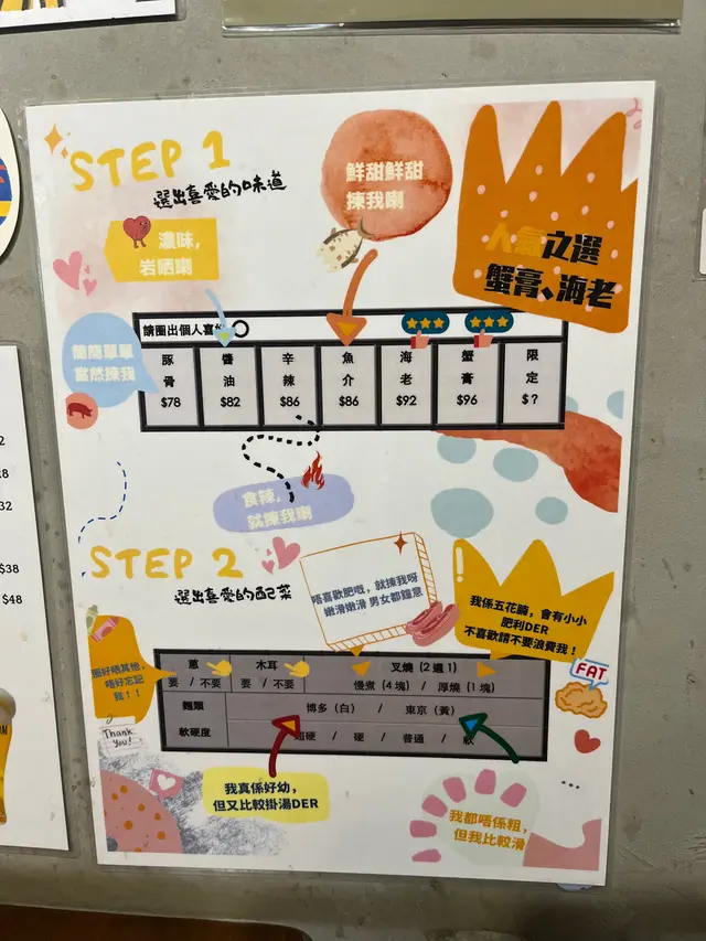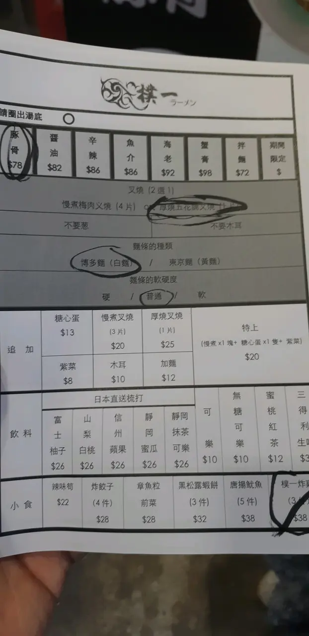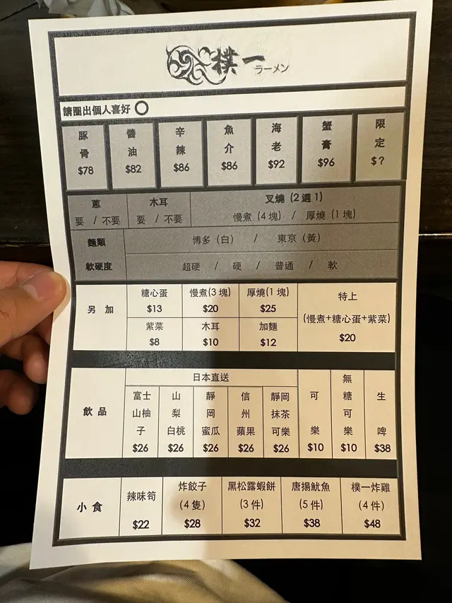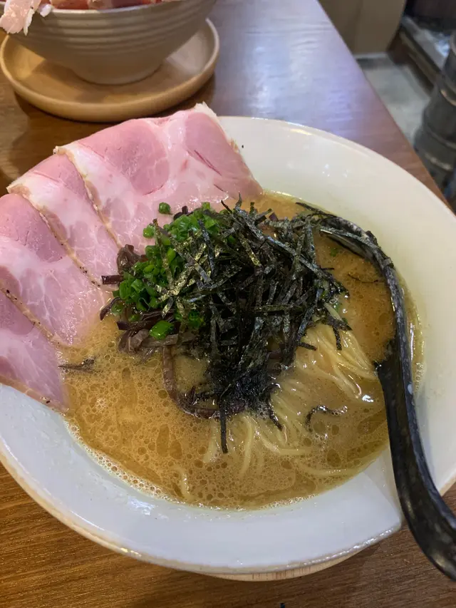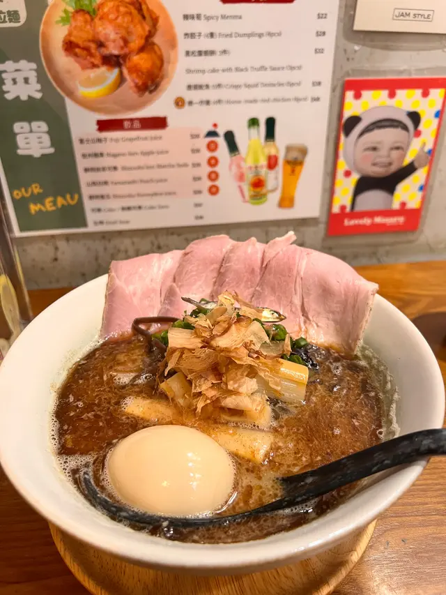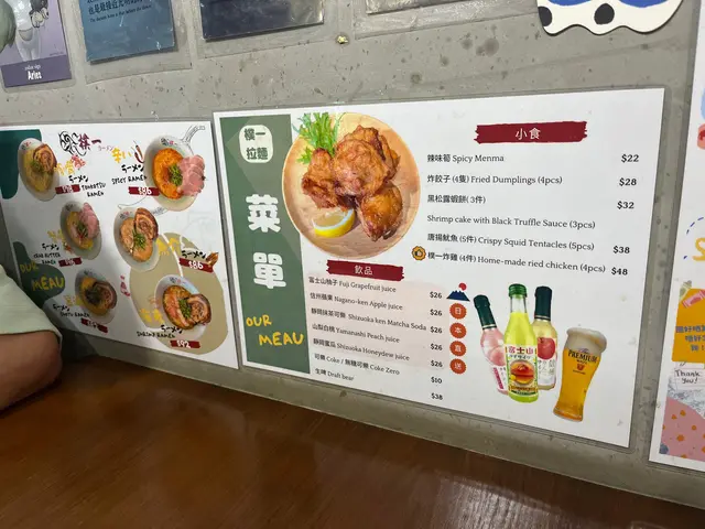2022.9.9其實係一兩個月前(?)經過旺角個陣有見到哩間店,等到今日終於有時間去試下啦。我點左碗豚骨拉麵,(慢煮薄叉東京麵)🥣🥣湯底夠濃厚,唔油膩冇豬腥味,但唔夠鮮甜😗🍜🍜麵身為中細麵我點超硬麵, 食落煙韌爽口,冇鹼水味,但唔夠彈牙😗🍥🍥配菜叉燒我係揀薄切慢煮,食落唔會韌,冇血水而且唔會有豬腥味,好夠肉味😋😋雖然係薄切,但唔會一夾就散,仲好彈牙。另外再叫左一份唐揚炸雞,份炸雞好大件!每件有半個手掌咁大,一碟有4件,炸雞既外皮唔厚,炸得好脆,裏面雞肉彈牙多肉汁,鹹香適中,滿滿既蛋白質食左一件已經好飽😂😂😂店內裝修以簡樸為主,冇牆紙冇地磚個種,只有簡單既拉麵海報做裝飾以及收納架放模型🎎我超鐘意哩種簡樸風既餐廳。🏠🏠場內連廚房大約係500尺左右既小店,吧檯只有3個位,方檯大約8張。我大約1點30分左右入黎,就聽到店員同之後入店的客人講冇唒叉燒啦,所以要揀非繁忙時間入黎就好啲🤔💰💰價錢方面,拉麵既麵量唔多,約130克左右,配菜除左叉燒,有的就是木茸,青蔥同少量乾辣椒絲要78蚊,雖然叉燒有4塊,但如果多半只味玉就抵食啦。🍗🍗唐揚炸雞黎到個陣真係呆左!😳😳😳😳一碟有四件而且大件,只係48蚊!好抵食👍🏻👍🏻哩個係驚喜😋😋😋😋哩間拉麵小店做到6款湯底真心覺得選揀算多,下次會試下其他湯底👍🏻👍🏻👍🏻😃…查看更多
