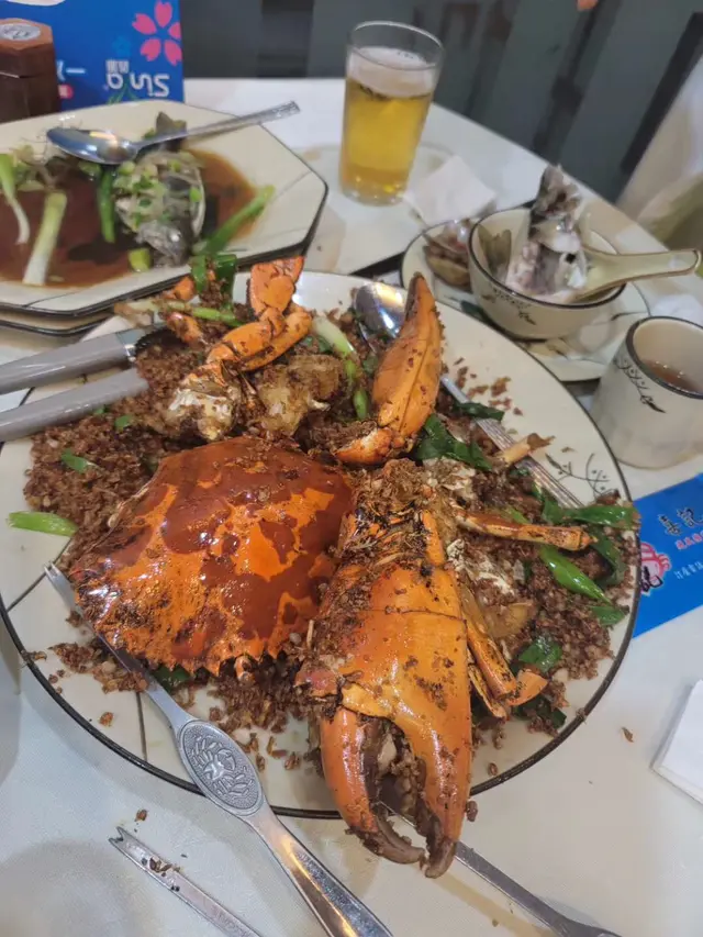 好耐無食過橋底辣蟹啦,對上一次食係幾年前啦,今次見到有600幾套餐,有1隻蟹加個餸,就決定食他我們最後叫有炒蟹 (小辣) 頭抽鐵板蠔 豉油皇炒麵 仲有燒鵝首先來嘅係燒鵝,我們加左錢要下裝,咁就有燒鵝髀食啦,呢個燒鵝嘅味道就真係好普通,而且唔熱嘅,我諗普通酒樓嘅燒鵝會出色過他之後主角避風塘炒辣蟹就到啦,我們叫左小辣,但小辣唔係小辣啊係好辣,可能係我自己唔食得辣啦,連我最鐘意嘅蟹蓋,入面嘅蟹肓都食唔到😭😭😭,不過他d蟹都幾新鮮,蟹肉好彈牙,唔食得辣嘅記得唔好懶醒叫小辣啊其實都唔係好明點解呢d食避風塘炒蟹嘅鋪頭都係會叫豉油王炒麵嘅😂就普普通通囉 炒麵囉,可以有咩特別啊頭抽鐵板蠔,我覺得呢個係呢餐飯最好食嘅,汁好濃,蠔好大隻,唔知點解,d汁有芝士味,明明呢個野應該係無芝士😂😂不過!呢個鐵板蠔有一個致命傷,就係有沙!其中1隻好大嘅嘅蠔食到我成口沙啊救命😭呢餐真係唔平,仲要幾貴下,而且成間餐廳有98%嘅客人都唔係講廣東話嘅,大部分都係講普通話,令我有種翻左大陸食飯嘅感覺查看更多