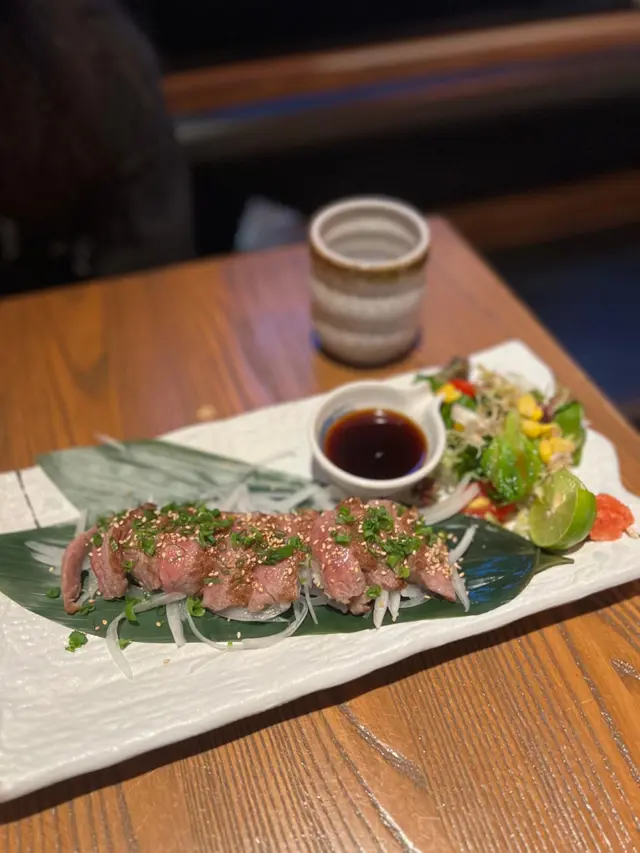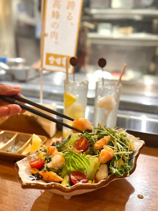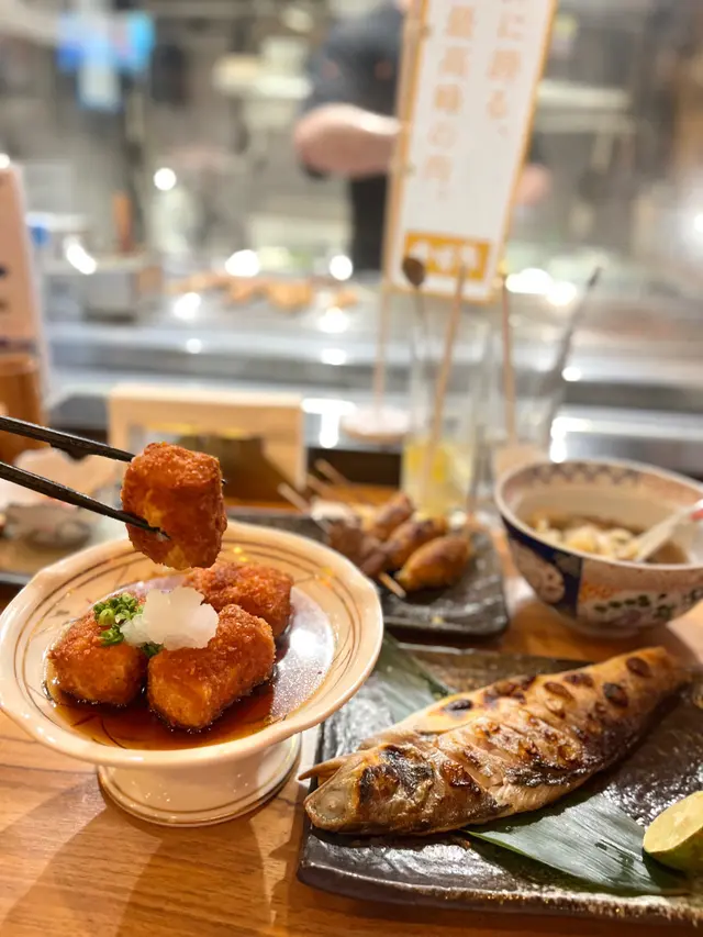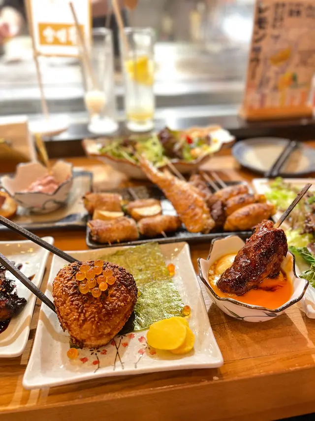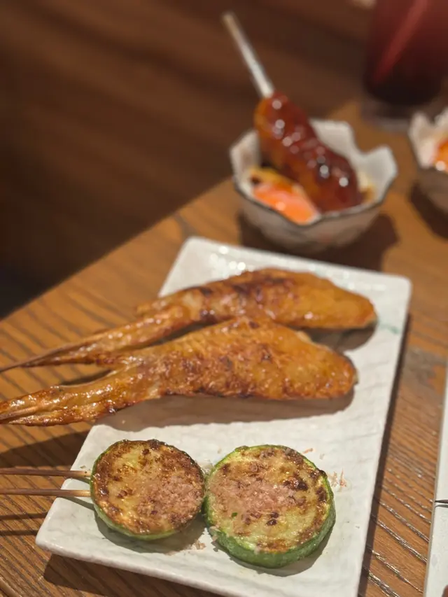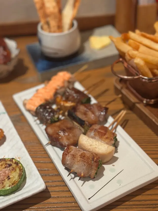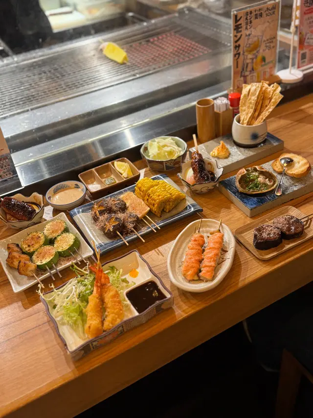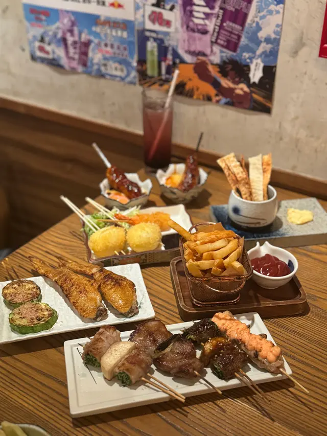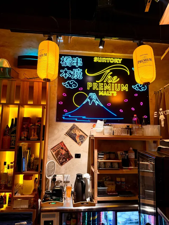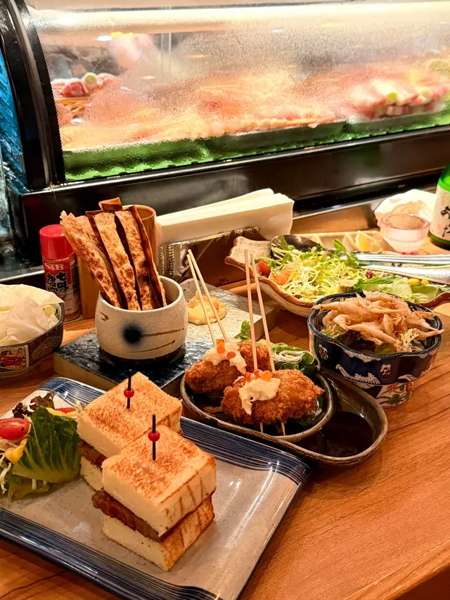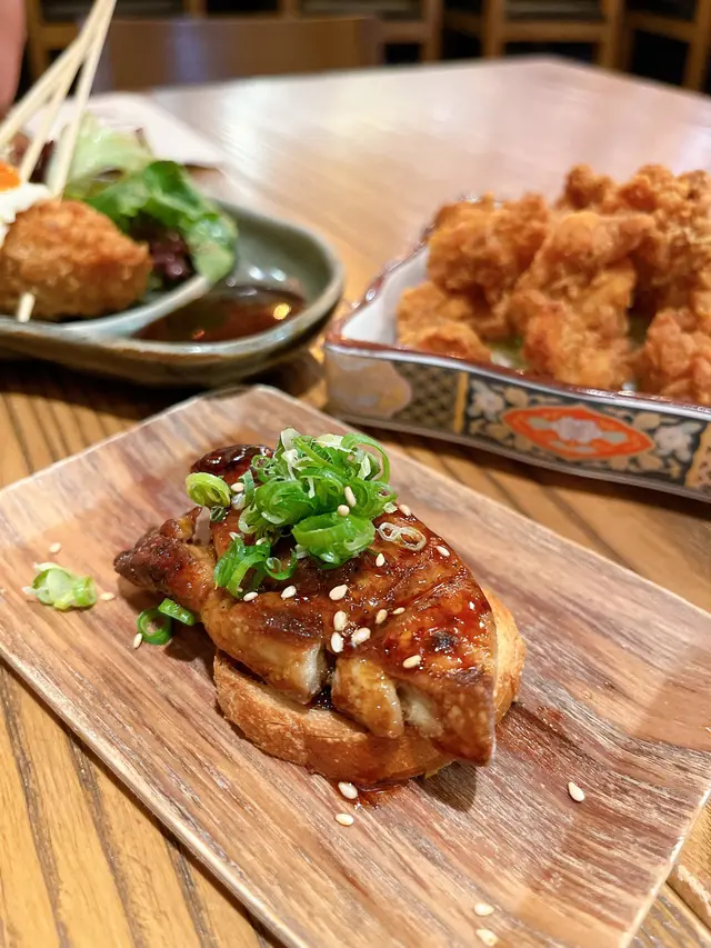 經過尖沙咀棉登徑, 轉角路口位一定被呢間店吸引,富有日本色彩的紅鳥居, 紅色燈籠, 餐廳內設計都好日本居酒屋feel,以深色木系為主題, 師傅就在吧枱後烹調,彷如置身日本小小的居酒屋, 用QR code 落單, 方便簡單,而串燒連少鹽少油少辣等選項都齊備,十分細心🌟燒雪魚乾|炸日本白蝦來居酒屋飲2杯, 送酒小食當然不能少, 白蝦炸得夠乾身,食落冇油膩感,送酒一流!👍🏻🌟牛油果大蝦沙律沙律份量充足,新鮮沙律菜, 車厘茄,再加上牛油果及大蝦, 配料豐富, 清新爽甜🌟玉子燒(芝士)熱辣辣的玉子燒,香軟細滑,蛋味香濃,內裏的芝士半融, 有拉絲的效果,芝士控必食🌟日本宮崎A5和牛三文治必食推介, A5和牛味道濃郁軟腍,又有足夠的牛脂香,配烘得脆脆地嘅軟熟麵包,超正🤩🌟串揚:🔸串揚蟹肉廣島蠔- 都係必食推介, 廣島蠔燒得剛剛好, 飽滿嫩滑, 再加上蟹肉及三文魚籽, 鮮上加鮮🔸串揚大蝦- 大隻大蝦, 包著麵衣, 香脆入味🌟串燒:🔸明太子雞翼(七味)-雞翼釀得漲卜卜, 雞翼燒得焦香, 鹹香的明太子入口香濃, 啖啖肉好滿足🔸牛小排青蔥卷-啖啖香蔥滋, 加上牛小排, 肉汁滿滿🔸豚肉豆苗卷-豚肉燒得香口, 而豆苗吸受肉汁, 很不錯🔸田樂豆腐-還原田樂燒的基本, 將炸豆腐塗上主要由味噌做成的田樂醬,再燒,豆腐沁入味噌的濃郁鹹甜,焦脆之餘有豐富口感 🔸焦糖菠蘿- 表面香脆, 淡淡的甜味, 配菠蘿特有的酸甜,好味又多汁😋🔸翠玉瓜-加上醬汁及木魚絲同燒, 清新之餘都好惹味🌟Drink: 飲品酒類free flow($168)餐廳有2小時飲品酒類free flow, 無論係生啤、清酒或燒酎、梅酒等全部都包,超抵!…查看更多