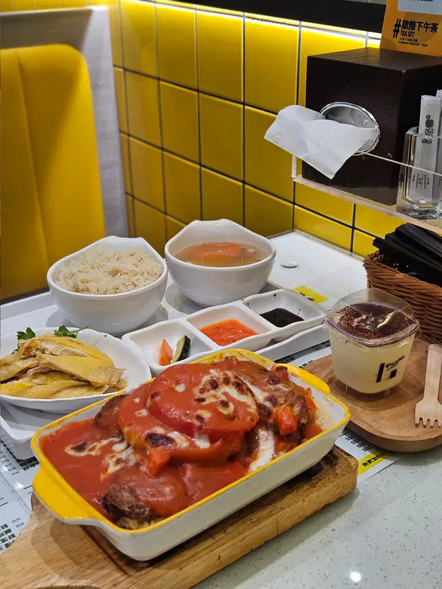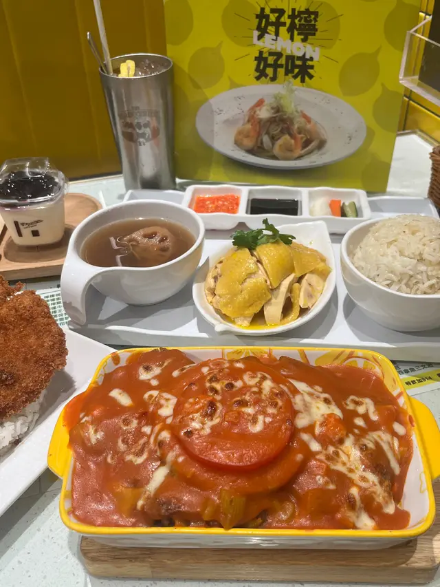 位於觀塘中海日升中心❣︎檸檬🍋冰室❣︎係一間新式港式冰室,以檸檬黃色做主題,仲擺放左好多檸檬樹同植物好靚😍好有生氣,呢到地方超大,座得相當舒服,唔怪之得長期人氣滿滿。❣︎秘製無骨海南雞飯❣︎$68海南雞肉質非常嫩滑😋👍🏻雞皮滑而不肥,跟埋醬汁同例湯,份量大碟,亦係餐廳8️⃣大名菜之一。❣︎冰鎮蜜桃🍑咕嚕肉❣︎$72呢個擺盤超誇張🤭成大盤冰上😀👍🏻咕嚕肉酸甜酥脆,用冰鎮上入口有清涼感,好岩而家夏天食。❣︎馬蹄魷鬚蒸肉餅❣︎$62馬蹄非常爽口😋👍🏻肉餅蒸得岩岩好夠晒腍滑,加埋魷鬚入口更香口。❣︎魚香茄子🍆煲❣︎$72⭐️必食推薦😋👍🏻即叫即製,熱辣辣香噴噴🤤非常惹味,茄子🍆吸滿醬汁,超好送飯。❣︎經典黑牛❣︎跟餐+$18⭐️必飲推薦😋👍🏻佢用嘅朱古力雪糕有埋朱古力🍫碎,好有咬口,口感超好。❣︎華田紅豆🫘冰❣︎跟餐+$10呢到啲特飲好大杯架😋👍🏻紅豆冰仲要用沙冰底,超透心涼,紅豆軟腍。…查看更多