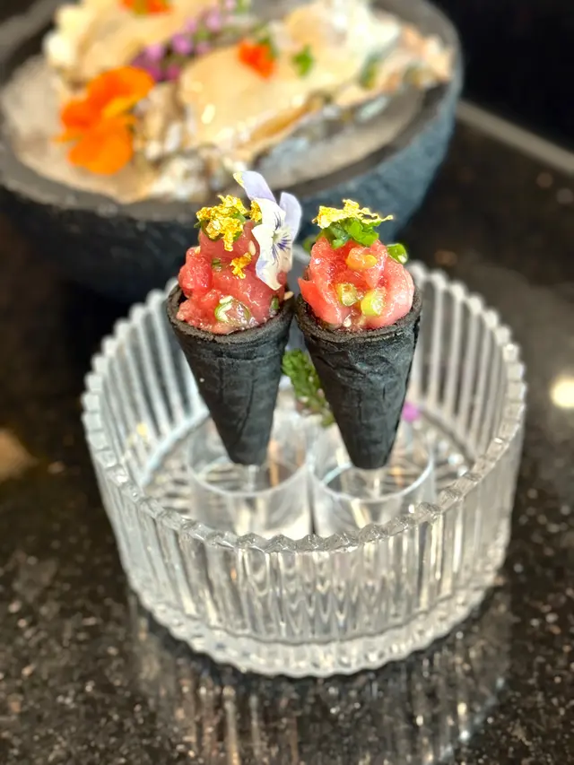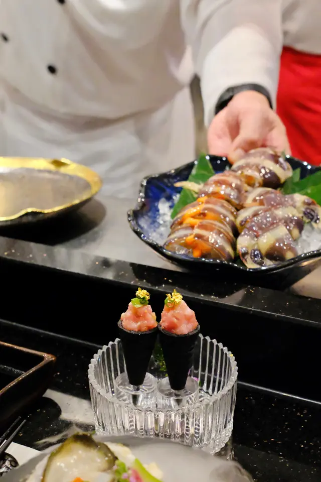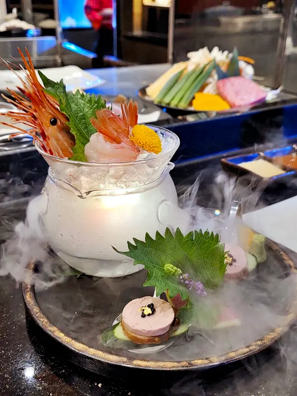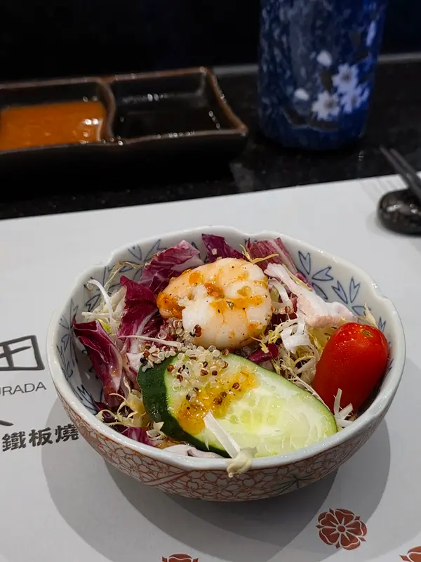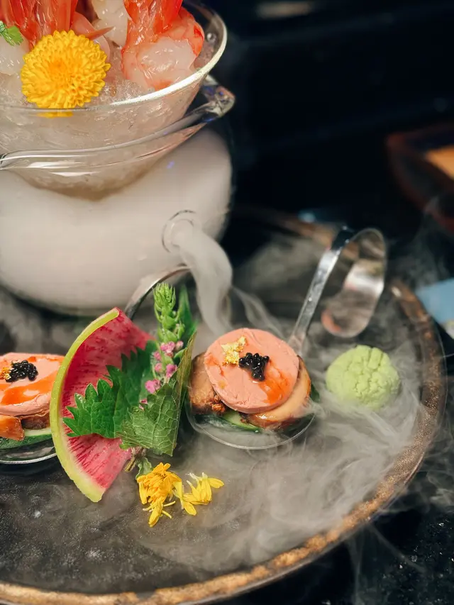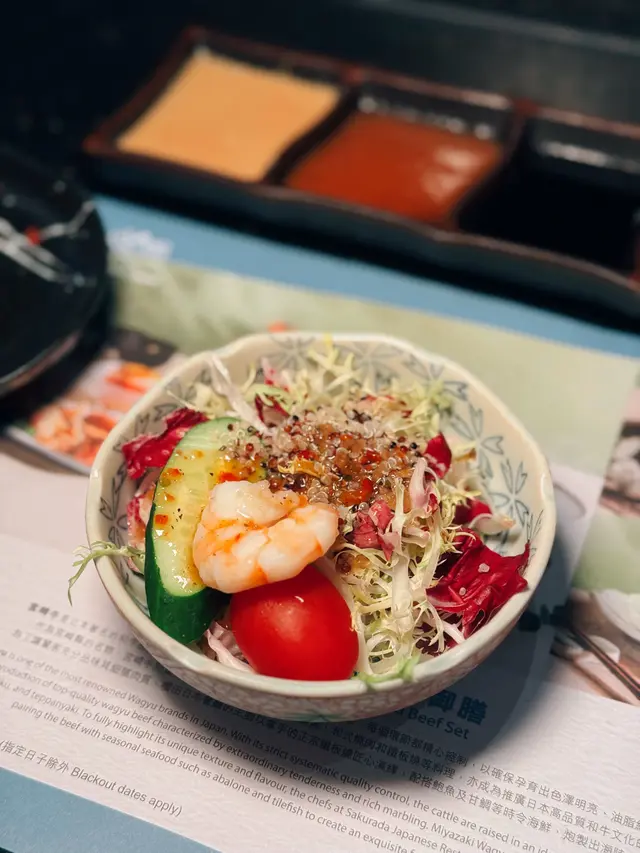 友人約到沙田帝都酒店內的櫻田餐廳晚膳,想起也有一段日子沒有來過了;看過餐牌,選了門口推介的「北海道A5和牛·蟹御膳(二人前)」。原價 : $2,688,現在優惠價 : $2,288,供應期由2025年11月至2026年1月,逢星期二至日,供應期有限,最好預留訂座。有佳餚又怎能沒有美酒,朋友選了支清酒,用冰桶盛載以保持溫度,味道清甜帶米香,配搭上鮮甜的蟹肉,確實不錯。首先上場的「松葉蟹肉沙律」,這道沙律以松葉蟹肉為主角,搭配清爽蔬菜與簡單調味,作為清清味蕾的前菜,也很不錯。接著上場的是「金目鯛刺身及日本室津生蠔」,金目鯛刺身是細膩鮮甜的代表,室津生蠔則是濃郁鮮美的極致。兩者同場,形成「清爽 × 醇厚」的對比,既能享受魚肉的優雅,又能體驗生蠔的豪邁,正。「匈牙利鴨肝配紅酒燴梨」鴨肝入口即化,油脂香濃卻不膩,帶有微微堅果與奶油的風味。紅酒燴梨果香馥郁,酸甜平衡,紅酒的醇厚與梨的清爽交織,與鴨肝的濃郁形成強烈的對比,前後完美呼應,層次感極佳,兩者又互相平衡,既奢華又不失清爽。「鐵板燒時令原隻蟹」看著大廚飛快的手指,拿著工具把蟹件在鐵板上舞動,宛如舞蹈般華麗;最利害是大廚把燒好的蟹件重新拼砌成完整的大蟹,帶來強烈的舞台感,非常厲害;蟹件在鐵板燒的高溫下更能鎖住汁液,令肉質更加香濃;食落鮮甜帶有一點海水清爽的鹹香,也能保持嫩滑,清鮮與蟹膏的濃郁形成鮮明的對比,令人回味。不吃牛的我,特意把和牛換成了「金菇豚肉卷」,大廚先把金菇放上鐵板,燒至恰到好處的熟度,再鋪上薄切豚肉片,煎到邊緣微微焦脆。隨後以巧手將豚肉緊緊包裹着金菇,繼續煎香。豚肉在高溫下油光閃亮,油脂香氣不斷滲出,與金菇的清新草本氣息交織,入口既濃郁又清爽,層次分明,令人一試難忘。原價 $488的釜飯,現在只需加$220,便可把套餐中的蟹肉味噌炒飯,升級為「松葉蟹肉三文魚籽釜飯」,超值抵食。蟹肉絲絲分明,鮮甜清爽,入口柔滑;三文魚籽晶瑩剔透,咬下去瞬間爆汁,鹹香油脂在口腔中迸發~一清一濃,層次感滿滿,蟹肉的細緻優雅配上魚籽的豪邁濃烈,口中像開了一場奢華派對。視覺上更是滿分:紅橙色魚籽點綴在雪白蟹肉上,閃閃發亮,像一碗小小的海洋珠寶。最後的「炒野菜及味噌汁」是一組非常經典的搭配:一清爽、一溫潤,互相平衡。炒野菜提供爽脆的纖維感,味噌汁則帶來溫暖的湯汁,兩者結合既健康又滿足,超好食。細細件的「千層忌廉蛋糕」作為飯後甜品,它不但兼具視覺美感與口感層次,還有它的魅力在於「輕盈卻不失豐富」,滿足!#櫻田日本餐廳 (沙田)地址: 香港沙田白鶴汀街8號帝都酒店3樓電話: +852 26943810…查看更多