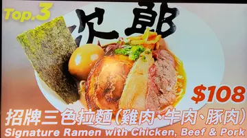 今日去咗尖沙咀海旁散步,晚上入去K11 Musea B2樓嘅Foodcourt搵食。其中試咗拉麵店——「次郎拉麵」嘅招牌三色拉麵。??Signature招牌三色拉麵 一碗拉麵有齊雞肉、牛肉、豚肉三款肉,仲有原隻溏心蛋!雞肉嫩滑,牛肉係比較高質嘅肥牛,豚肉肥瘦適中,湯底本身係豚骨湯,但我加咗$10轉咗「香濃海老湯」,真係冇改錯名!湯頭超濃郁,拉麵就係鍾意呢種重口味。😋 雖然本身拉麵已經跟咗木耳絲同埋少量嘅荀,但我都另外再加$12要多咗荀,爽脆清甜,同濃湯好夾!??靜岡綠茶(+$20) 食濃湯拉麵點可以冇嘢飲?單買左枝日本靜岡茶。另外呢度其實有個$148套餐可以包一碗拉麵一份炸雞同一支嘢飲,不過我驚自己食唔曬咁多肉就冇叫喇,但其實套餐抵食好多。