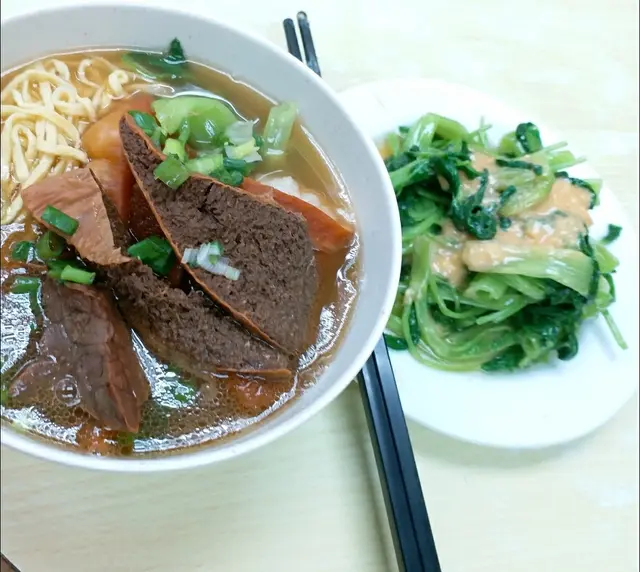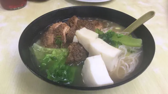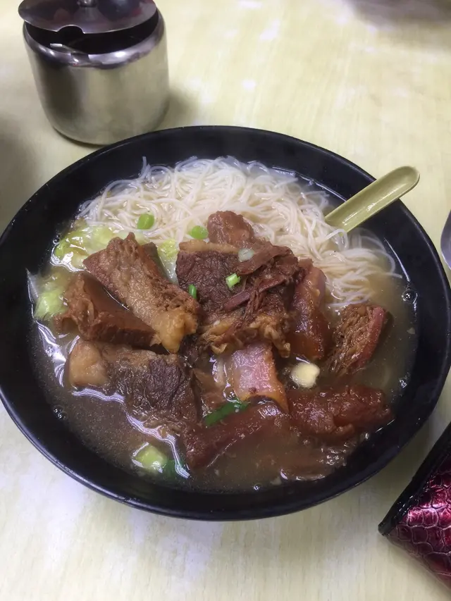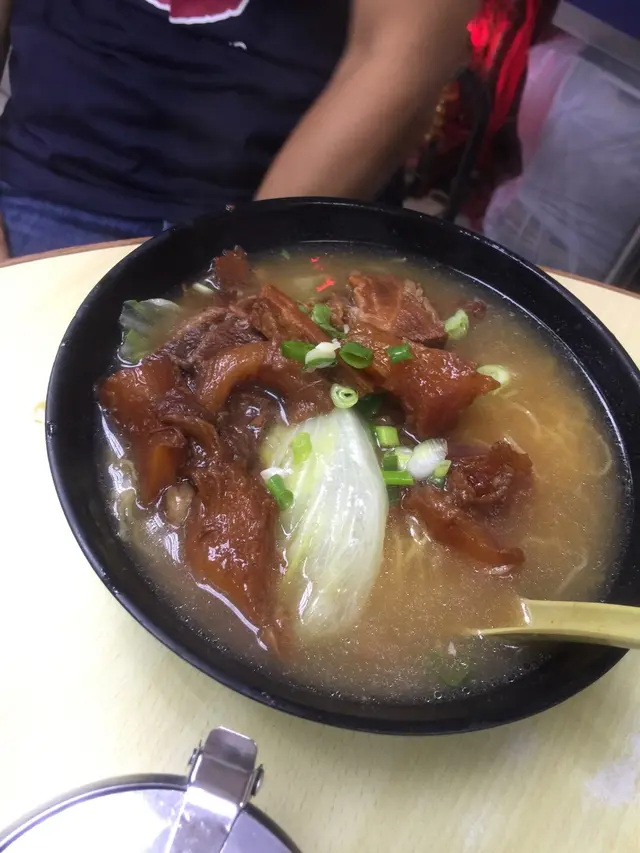 工作到晚上10點多都未食飯,太夜大家都無乜胃口,所以搵間麵店,但呢個時間大多都收了!搵到呢間未收,大家入到去,一間好普通嘅麵店,地方幾大,桌椅唔迫,大家坐低落單,店員姨姨好爽,已報告無晒河粉、雲吞同水餃,菜都淨番生菜!食物好快到!牛腩牛筋米粉:黑色膠碗,份量幾大,牛腩連啲肥肉,瘦嗰部分纖細粗,不過唔痴牙,柱候炆得入味,牛筋彈牙稔口,炆得入味!米粉幾滑!湯底濃味!柱侯味香濃!好味!腩汁的生菜:生菜爽脆,腩汁比蠔油清爽,唔會搶咗生菜味道!好味!同事食:牛腩牛筋麵:牛丸米粉:紫菜牛肚粗麵:原來我哋入座時已差幾分鐘收舖,姨姨都無出聲,好爽咁招呼埋我哋,仲話,收0130係好多個月前!我哋食埋佢哋就收舖!謝謝姨姨!查看更多