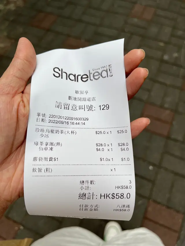 歇腳亭開到周圍都有,總有一間喺附近,非常方便。今次買咗珍珠奶綠,少糖少冰。珍珠份量都幾多,好大粒,但有啲淋。奶綠比奶茶清新,有少少綠茶味。雖然叫咗少甜,但都好甜,下次叫半糖先。查看更多