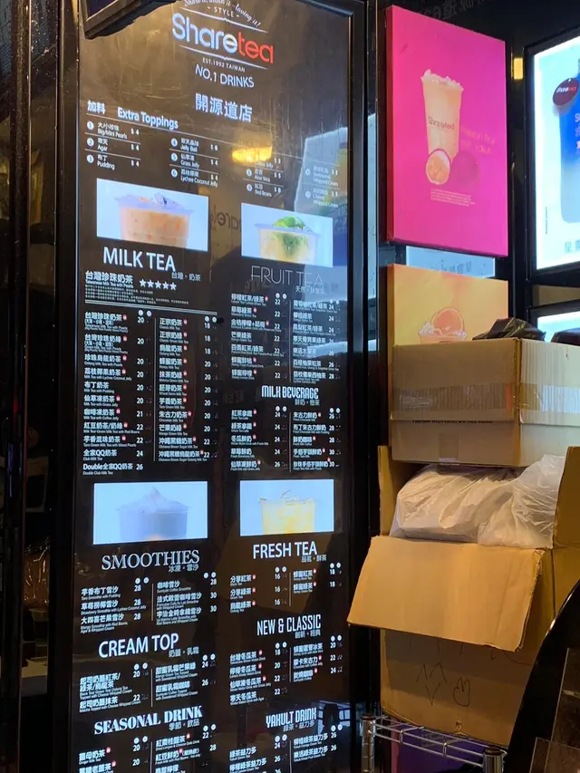 公司在觀塘,基本上每日都經過好多次,近年台式飲品鋪越開越多!share tea都算係老臣子了!仲記得第一次飲水果茶就係幫襯佢,之後我就愛上左水果茶,特別係喜歡佢裡邊既熱情果味!由於糖份高,我通常都叫最少糖,查實就咁飲水果既清甜,酸酸地都好夠,我就唔係咁鍾意落太多糖,一來對身體唔好,二來甜味會蓋過曬所有生果既味同茶味,實在唔係太理想!我無咩試過佢別種口味既飲品,因為我偏愛水果茶,都飲過好幾間,呢間入到三甲!查看更多
