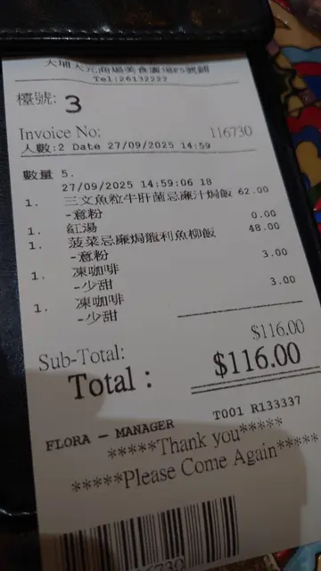 原來呢間餐廳開業九年,但裝修一點也看不出帶有陳舊,估計是期間有裝修過吧,我最喜歡卡位的花磚桌面,真的很有風格及氣氛,讓人感覺這是餐廳而不是茶餐廳。分別叫了下午餐和茶餐,原來焗品份量都是相同,價格的分別就在於餐湯及蒜蓉包,我吃的是午餐,覺得喝了這個湯簡直是有賺,感覺是自家淆製,不是罐頭湯,蕃茄的酸味剛好。三文魚的焗品,感覺是比較腥的,但亦可以說成魚味比較重。飲品方面都是常規出品,就是把奶和糖給你調好的那種。特別說一下服務非常熱誠,最先是由門外笑容招呼,離開時還特意讓道,感覺員工對工作太有熱誠了,當時入座就已經想問營業時間,準備下一次介紹朋友再來。…查看更多