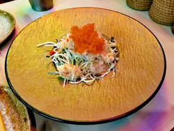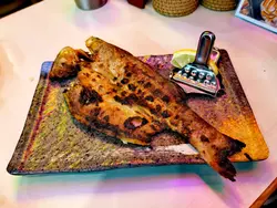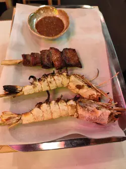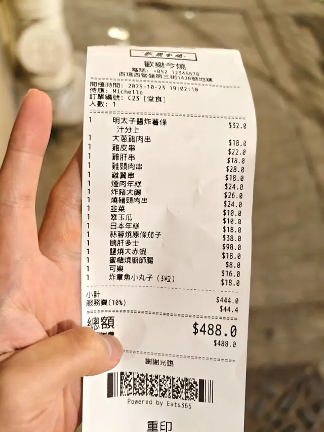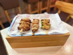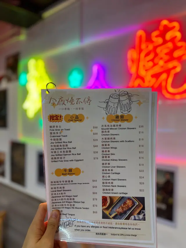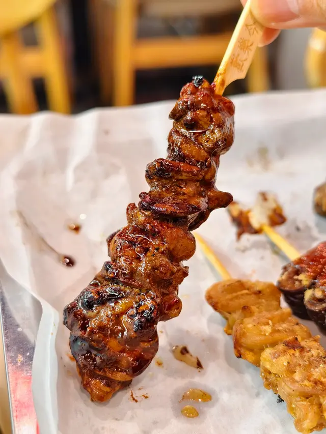 一間在居民區內的燒烤小店,餐廳不算很大,但提供的款式挺多的,更有多款海鮮,而且師傅的燒烤手藝都挺不錯,沒有燒過火,價錢也不算貴,能吃過癮!明太子炸薯條(32元)用的是波浪薯條,口感更酥脆,配上香滑鮮甜的明太子醬,挺惹味。大蔥雞肉串(18元)燒完以後肉汁挺豐富的,加上脆嫩的大蔥更解膩。雞皮串(22元)這裡是偏香脆的口感,味道鹹香。雞肝串(18元)燒到7—8成熟,口感鮮嫩綿滑,有雞肝香味。雞頸肉串(28元)肉質結實有彈性,表面焦香。雞翼串(18元)性價比錯,想不到有3隻雞翼,肉質挺嫩。煙肉年糕(24元)表面焦香的煙肉包裹住軟糯的年糕,味道鹹香。炸豬大腸串(26元)炸得非常香脆,但又有大腸的香味,本身經過滷製,再加上酸甜的醬汁,更惹味。燒豬頸肉串(24元)燒得焦嫩又有油香。韭菜(10元)份量很足,口感脆嫩。翠肉瓜(10元)質相挺不錯,吃起來質感滑嫩,香甜多汁。日本年糕(18元)中間非常軟糯,吃起來有米香,加了醬油來調味。蒜蓉燒原條茄子(38元)除了蒜蓉還加了挺多的蔥白,吃起來蒜香味十足,茄子滑嫩多汁。鹽燒大赤蝦(18元)性價比不錯,真的挺大隻的,口感彈牙蜜糖燒廚師腸(8元)用的是真正的廚師腸,味道是童年回憶。炸章魚小丸子(18元)雖然是炸的,但小丸子比想像中的要足料,每粒都有2—3粒大大粒的章魚肉,口感爽滑,外脆內軟的。鵝肝多士(98元)麵包鬆軟,鵝肝有油香。可樂(16元)還可以有冰底和檸檬,真的好評!…查看更多