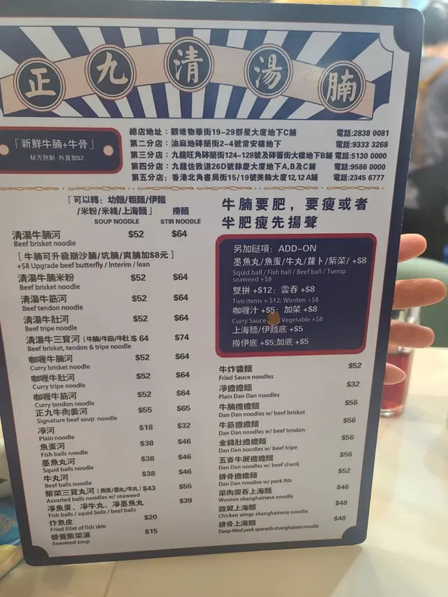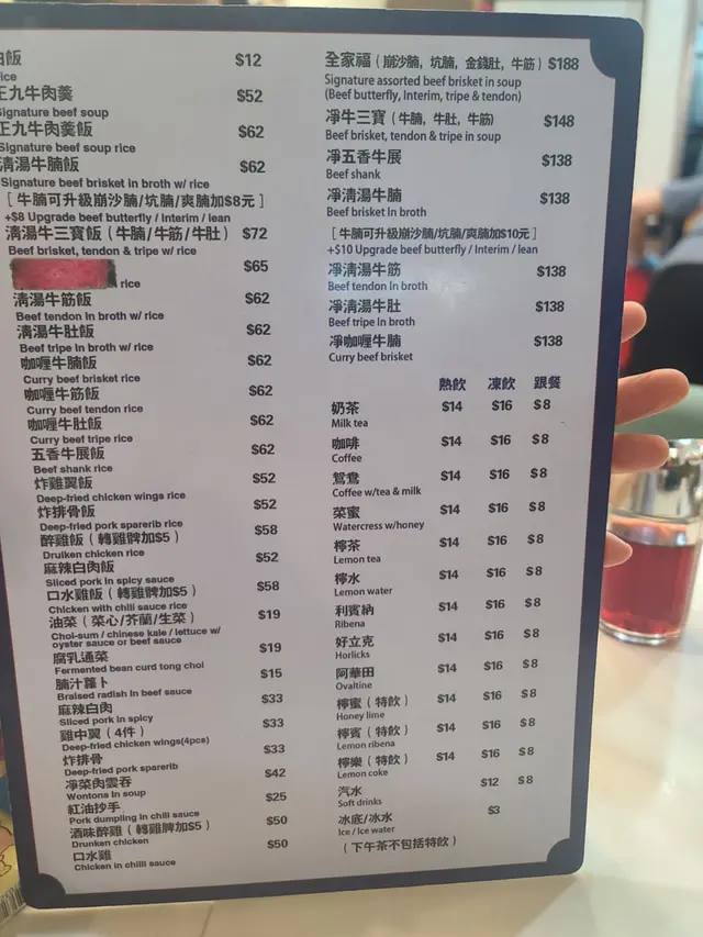 📍香港📍佐敦📍正九清湯腩 (佐敦)📍佐敦佐敦道26D號餘慶大廈地下A-C號舖📍星期一至日 10:00~22:45🦄 清湯牛三寶河粉拼紫菜 $64+$8湯頭清甜唔會過咸飲完都唔會口渴👍🏻 河粉好滑唔會淋到一咬就爛。三寶包括牛腩、牛筋、牛肚,份量好足!牛肚乾淨有嚼勁,牛筋軟綿綿又保持到有彈性,牛腩肉味香濃。差唔多台台都叫牛三寶。必試!🦄 淨菜肉雲吞 $42一份七大粒成粒乒乓波咁好抵食!隻隻都好足料,肉嘅比例佔多。夠晒飽肚。🦄 芥蘭 $19新鮮爽口!唔鍾意食芥蘭嘅都可以揀生菜或者菜心。呢個份量好抵食。🦄 凍檸蜜 $8跟餐加$8比好多茶餐廳價錢優惠👍🏻…查看更多