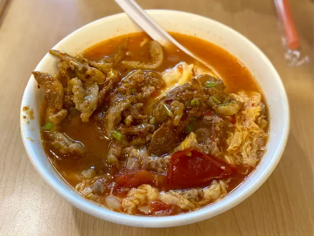 蒜香辣雞肉蕃茄肉碎蛋濃湯米粉