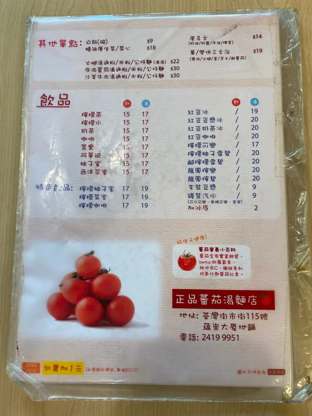 正品蕃茄湯麵店 (荃灣) 網址: https://s.openrice.com/QrbS0QBu000 地址: 香港荃灣荃灣街市街115號蘊崇大廈地舖 電話: +852 24199951