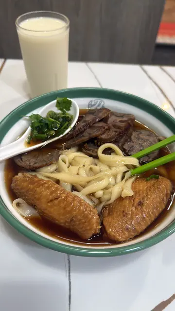我成日揸車周圍去買嘢食,路德圍咪錶場係其中一個最方便地方,但係多數都會買外賣,甚少堂食,呢一間山西刀削麵皇,就係上次坐低叫堂食,發現佢啲麵真係好煙靭,非常彈口,所以早兩日路經此地又專登泊車過嚟食多次山西刀削麵皇。今次坐低叫咗碗牛腱、滷水雞翼刀削麵,麵就一如既往彈牙、煙韌,雞翼非常之夠滷水味,但係牛腱就正正常常, $56配一杯凍豆漿,幾十蚊一碗堂食手工即做嘅麵,好過買碗xx粉外賣,所以唔會有咩投訴,快快脆食完就閃人。