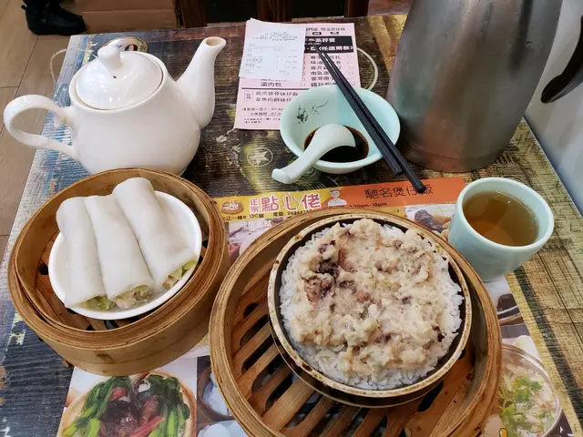這間在新北江商場,最入邊巷裏的點心舖,本來隔離有間譚仔,依家持續不斷的疫情,真係大集團,譚仔都倒閉了。希望疫情快啲過去,可以正常做生意。今日食孖寶,$34,可以飯+點心,或者兩個都是點心。加$4茶,沒有加一。孖寶幾扺食。單叫點心,由$18-$32。單叫蒸飯,由$30-$58。還有煲仔飯。今日孖寶食章魚肉餅飯,和雞絲粉卷。章魚肉餅蒸飯,飯粒軟硬適中,粒粒分明。肉餅有啲章魚粒,有啲厚度,有咬口,唔會太淋,好食。雞絲粉卷,粉卷有米香,好厚身。都好食。我鍾意食這裏嘢,落單即蒸,會等大約十幾分鐘,係耐啲,但熱辣辣的,好味好多。…查看更多