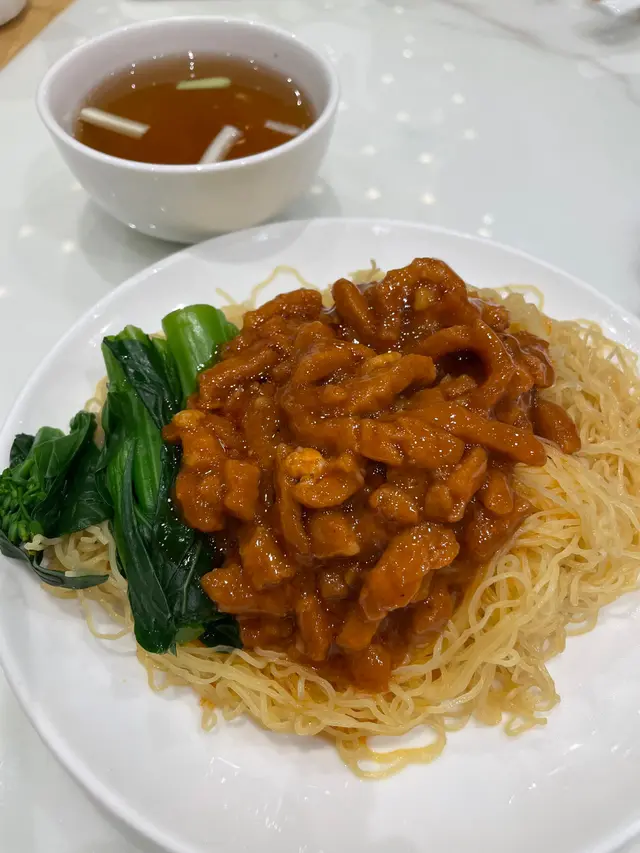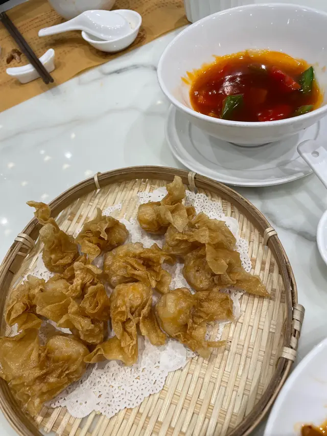 再一次嘅team lunch,呢到嘅好處我諗係好易滿足到所有人嘅要求,因為佢有粉麵飯同點心‼️同埋其實我第一次嚟呢間食🤭 最令我驚喜嘅絕對係五柳醬酥炸雲吞 $132/12粒,係迷你版嘅炸雲吞,係用平時叫湯麵嗰啲雲吞整,即係真材實料🤤加埋個醬熱辣辣真係好正😋 第二樣有驚喜嘅應該係香辣京都炒醬麵$68,我平時都唔會嗌呢類嘅,但因為share,所以有機會試到,雖然我唔係好食辣,但食落撈好嘅感覺真係幾正🤗 另外仲嗌咗香油條腸粉$55、蟹子棉花雞$45同香煎蘿蔔糕$48,形容為不過不失,無乜特別🤔不過如果唔係幾個人一齊嚟,我應該未必會再嚟食😂查看更多