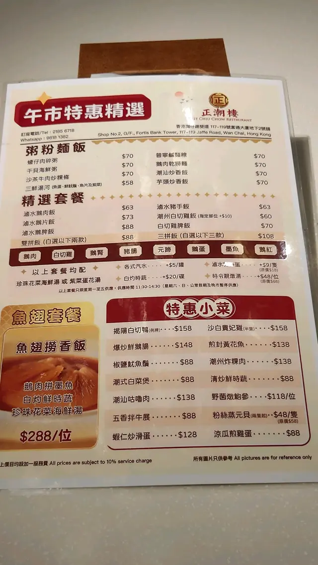正潮樓 (富通大廈) (灣仔) 網上訂座即賺Rice Dollars 網址: https://s.openrice.com/QrbS0t5aB00 地址: 香港灣仔謝斐道117-119號富通大廈地下2號舖 電話: +852 21856718
