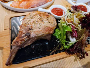 🙆🏽♀️法式朱鞍配薯條$238豬鞍夠厚身大件,肉質富彈性😋仲保留滿滿肉汁🐷薯條任食超正 🍟🙆🏽♀️金傳統英式早餐$148🍳🧇有齊炒蛋 🥚司華力腸,漢堡扒,煙三文魚煙肉🥓薯餅,沙律菜 🥬豐富美味的早餐👍🏻🙆🏽♀️childfood $58 雞蛋與高牆$58面層滿滿忌廉🥰香甜幼滑,甜度適中🧋超巨型棉花糖+熱朱古力🍫甜在心頭,非常滿足☕️#cafe#food#foodie…查看更多