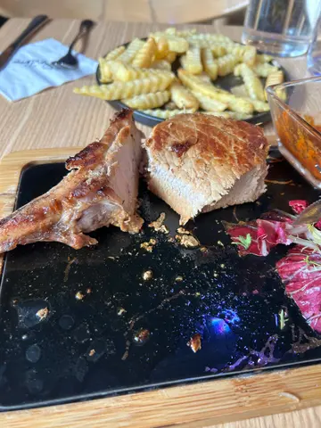 以前從未來過這餐廳 見到呢間都幾多好評 於是試下叫咗兩個午餐一個香煎豬鞍 一個英式Cod Fillet豬扒係「鞋」的個魚都炸得較乾兩者本身都沒什麼調味要靠旁邊的沙拉醬才有味道雖然係話任食薯條、薯蓉及沙律但薯條及薯蓉都係即整的等候時間長之餘薯蓉是沒有調味的水瓶內的水有雜質水杯內更有死蚊