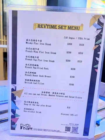 《😋晴晴港飲港食 #misshcfoodie 》早兩個星期去咗蘭桂芳嘅時光逆流原來喺上環有分店但呢間分店就行西式風格dinner set menu百幾至二百幾蚊🤨有得揀牛/豬/魚可以任食薯條、薯蓉及沙律菜😲英國傳統鱈魚柳 $168炸魚柳幾有驚喜🤩好厚身 炸到外皮好香脆魚肉唔會乾而且夠嫩滑點埋沙律醬食更滋味😋法式香煎豬鞍 $238又係好厚身🤨以黑椒同香草做調味煎到外面金香略嫌有少少韌配埋黑椒蕃茄醬食另一番滋味🍰雲呢拿榛子撻 $58落單時店員話其實唔係撻 係蛋糕咁一件上擺盤幾有心思 見到都開心☺️甜道適中 有雲呢拿香配合榛子令味道更有層次餅底都幾脆 令整體口感更豐富😌🍹焦陽(熱情果 / 焦糖燉蛋)$48個人幾鍾意熱情果溝埋梳打水凍飲夠解渴不過唔係好飲得出有焦糖燉蛋味🤔人均價錢: $250 (Dinner)味道: 7/10環境: 8/10服務: 7/10回頭率: 7/10📍 殤城逆流 @revtime.cityofsadness 地址: 上環皇后大道中181號新紀元廣場2樓202-203號舖電話: 92420173…查看更多