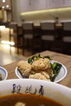 位於圓方的新店段純貞牛肉麵,以人氣台式牛肉麵見稱🇹🇼湯頭講究耗時:先以精選新鮮肥牛炸出天然油脂🐮加入23種香料與藥材🔥慢火拌炒8小時,再注入新鮮牛骨高湯細熬至超過18小時🤤呈現溫而不火、嫩而不膩的層次與甘香。店內設計糅合傳統中式與時尚質感🪵天然木材縱橫於天花🎋竹子拼接於牆身,與木地板和木質裝飾互相呼應🤍營造溫馨舒適的用餐氛圍。🌟三寶麵(腱心、牛肚,牛筋) $94牛腱心紋理分明,細膩柔韌🐮牛筋入口即帶來膠質的滑嫩與濃厚牛香🥰牛肚口感爽彈,吸附了滷汁的甘甜與香料的餘韻🍜配上寬厚有勁的手工麵,口感柔韌,掛湯效果出色,每一口都沁入牛骨湯的醇厚風味。🌟清燉牛肉麵(牛𦟌切片) $82牛𦟌切得厚薄適中🐮肉質緊實卻不失柔嫩,咬下去時滲出淡淡肉汁,細麵柔韌滑順,麵體氣孔較多,同樣易於吸附湯汁😋入口時湯頭清爽甘甜,牛肉的鮮美與蔬菜的清香交織,帶來細膩且溫潤的滋味。🌟老豆腐 $38老豆腐外觀樸實卻充滿韻味🫶🏻甘甜的滷水汁滲透外層豆腐氣孔細密,質地紮實,每一口都帶著濃淡相宜的鹹香與豆香交織💛搭配的一小撮酸菜,帶來微酸爽脆,十分開胃。🌟養生無骨紅棗黃酒雞 $78一上桌就散發著淡淡的酒香與雞湯的溫潤🍶去骨雞肉🐓吸附了黃酒的醇香與紅棗的甜美,肉質細嫩多汁。再以紅棗、枸杞與蔥花作點綴,味道清香,溫和又滋補。🌟三星蔥肉鍋餅 $48鍋餅外皮煎至金黃酥脆,咬下去蔥香四溢💚三星蔥特有的鮮甜與清脆,完美融入肉餡之中🐷豬肉餡細嫩多汁,鹹香適口,與蔥的甜味交織出豐富層次,搭配一旁的微辣醬料,更添惹味。🌟水蜜桃茉莉綠茶 $34