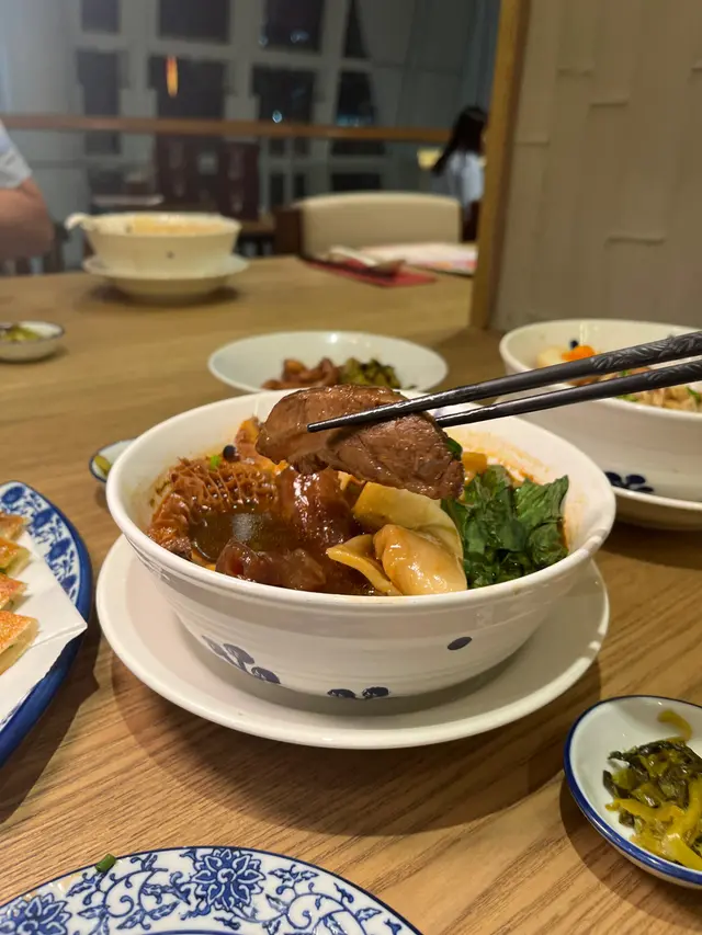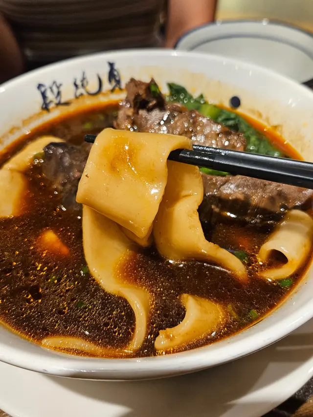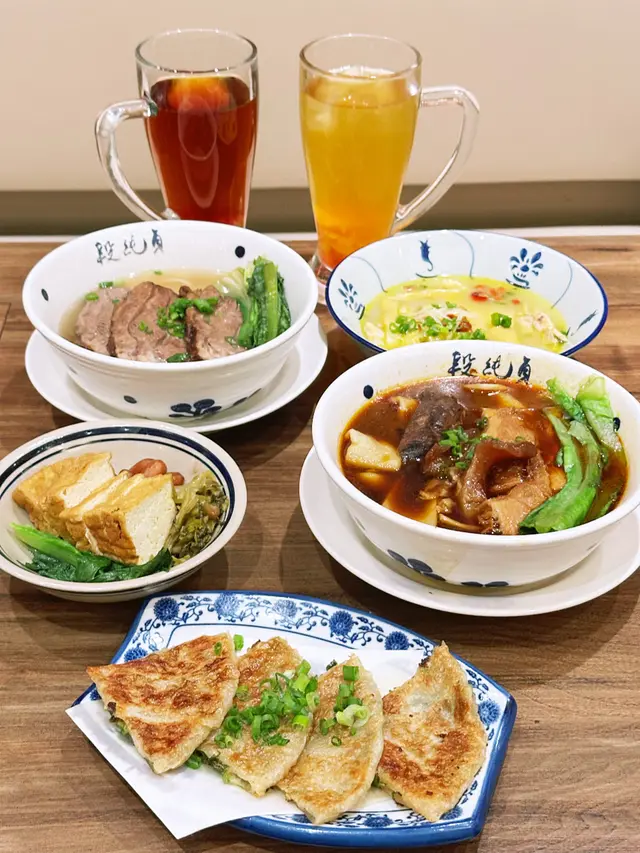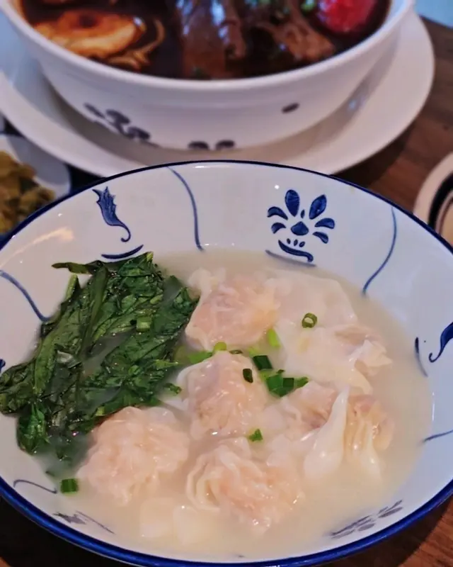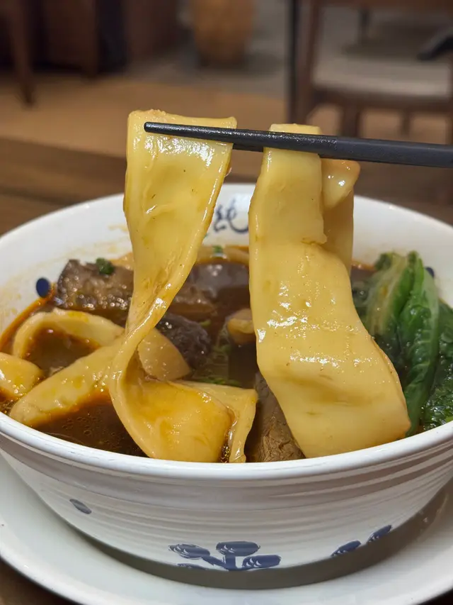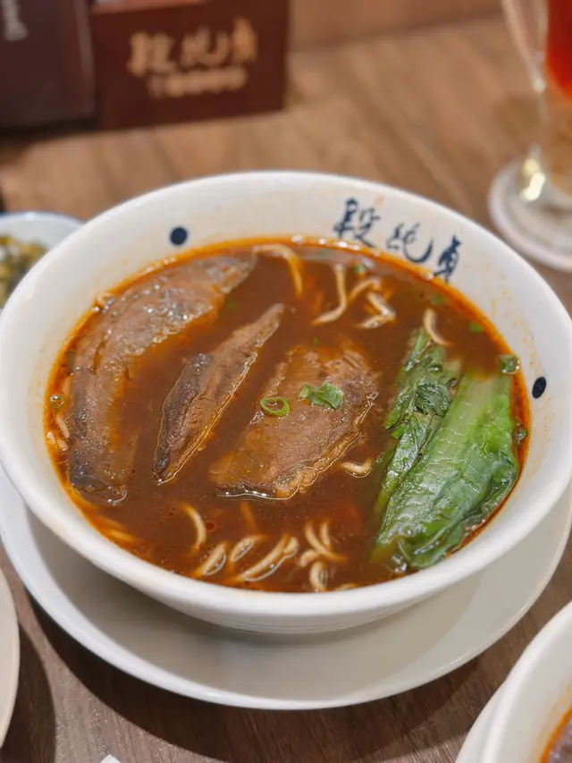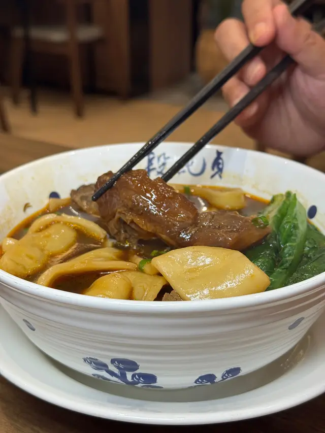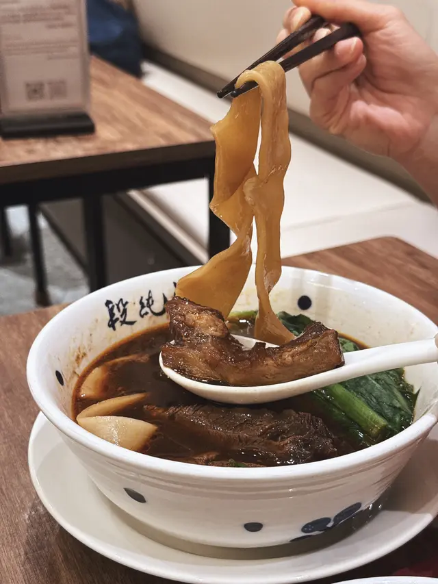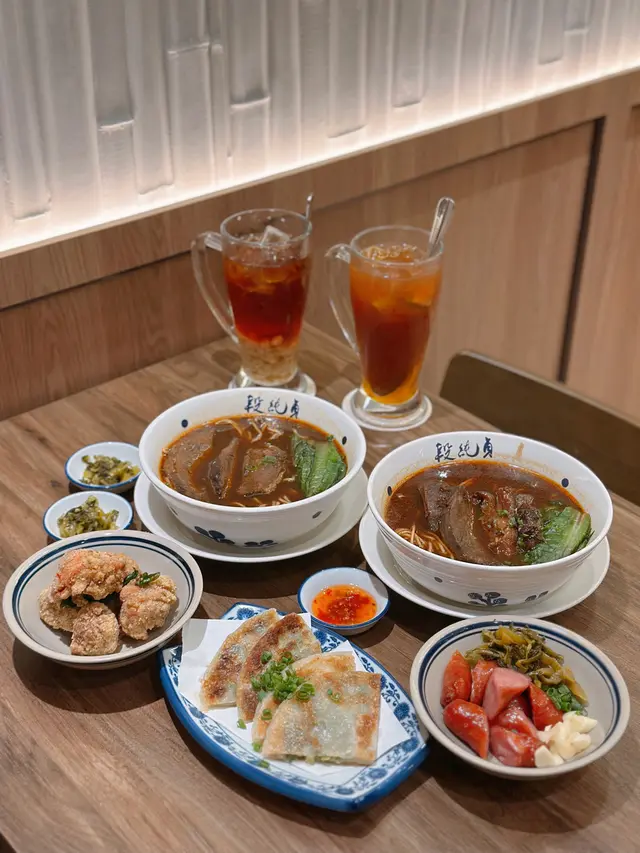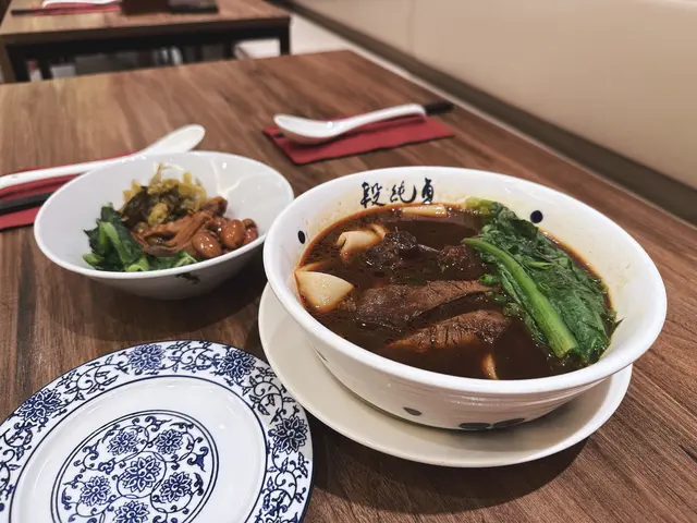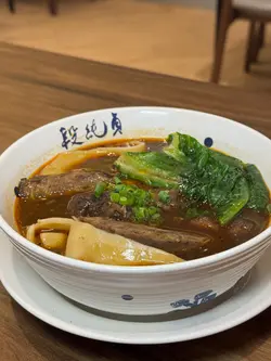 位於圓方的新店段純貞牛肉麵,以人氣台式牛肉麵見稱🇹🇼湯頭講究耗時:先以精選新鮮肥牛炸出天然油脂🐮加入23種香料與藥材🔥慢火拌炒8小時,再注入新鮮牛骨高湯細熬至超過18小時🤤呈現溫而不火、嫩而不膩的層次與甘香。店內設計糅合傳統中式與時尚質感🪵天然木材縱橫於天花🎋竹子拼接於牆身,與木地板和木質裝飾互相呼應🤍營造溫馨舒適的用餐氛圍。🌟三寶麵(腱心、牛肚,牛筋) $94牛腱心紋理分明,細膩柔韌🐮牛筋入口即帶來膠質的滑嫩與濃厚牛香🥰牛肚口感爽彈,吸附了滷汁的甘甜與香料的餘韻🍜配上寬厚有勁的手工麵,口感柔韌,掛湯效果出色,每一口都沁入牛骨湯的醇厚風味。🌟清燉牛肉麵(牛𦟌切片) $82牛𦟌切得厚薄適中🐮肉質緊實卻不失柔嫩,咬下去時滲出淡淡肉汁,細麵柔韌滑順,麵體氣孔較多,同樣易於吸附湯汁😋入口時湯頭清爽甘甜,牛肉的鮮美與蔬菜的清香交織,帶來細膩且溫潤的滋味。🌟老豆腐 $38老豆腐外觀樸實卻充滿韻味🫶🏻甘甜的滷水汁滲透外層豆腐氣孔細密,質地紮實,每一口都帶著濃淡相宜的鹹香與豆香交織💛搭配的一小撮酸菜,帶來微酸爽脆,十分開胃。🌟養生無骨紅棗黃酒雞 $78一上桌就散發著淡淡的酒香與雞湯的溫潤🍶去骨雞肉🐓吸附了黃酒的醇香與紅棗的甜美,肉質細嫩多汁。再以紅棗、枸杞與蔥花作點綴,味道清香,溫和又滋補。🌟三星蔥肉鍋餅 $48鍋餅外皮煎至金黃酥脆,咬下去蔥香四溢💚三星蔥特有的鮮甜與清脆,完美融入肉餡之中🐷豬肉餡細嫩多汁,鹹香適口,與蔥的甜味交織出豐富層次,搭配一旁的微辣醬料,更添惹味。🌟水蜜桃茉莉綠茶 $34