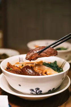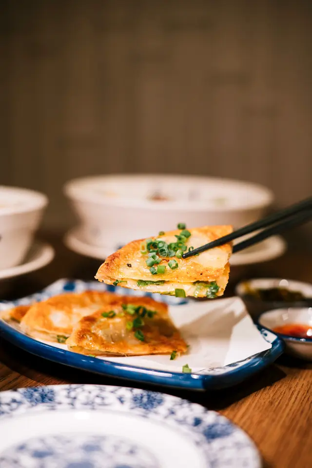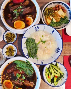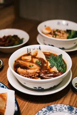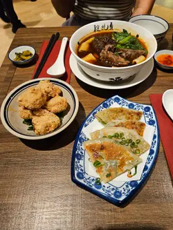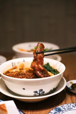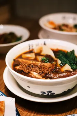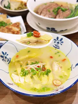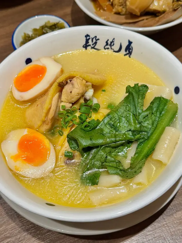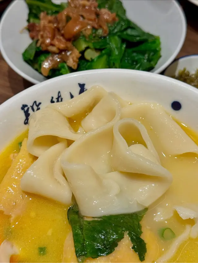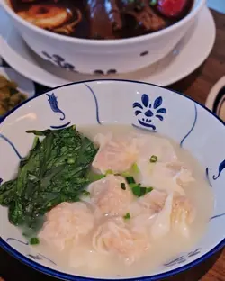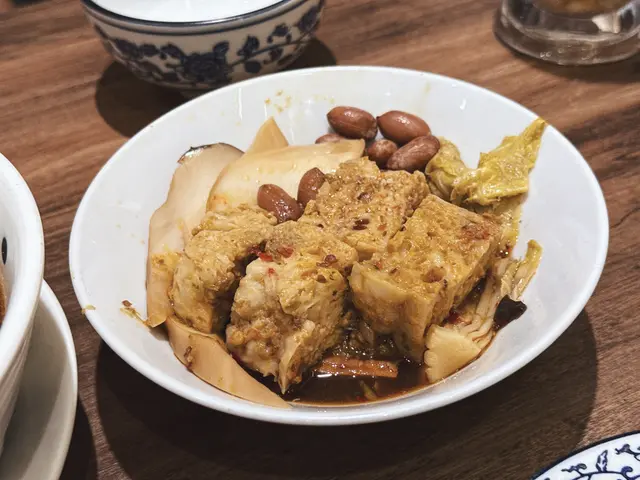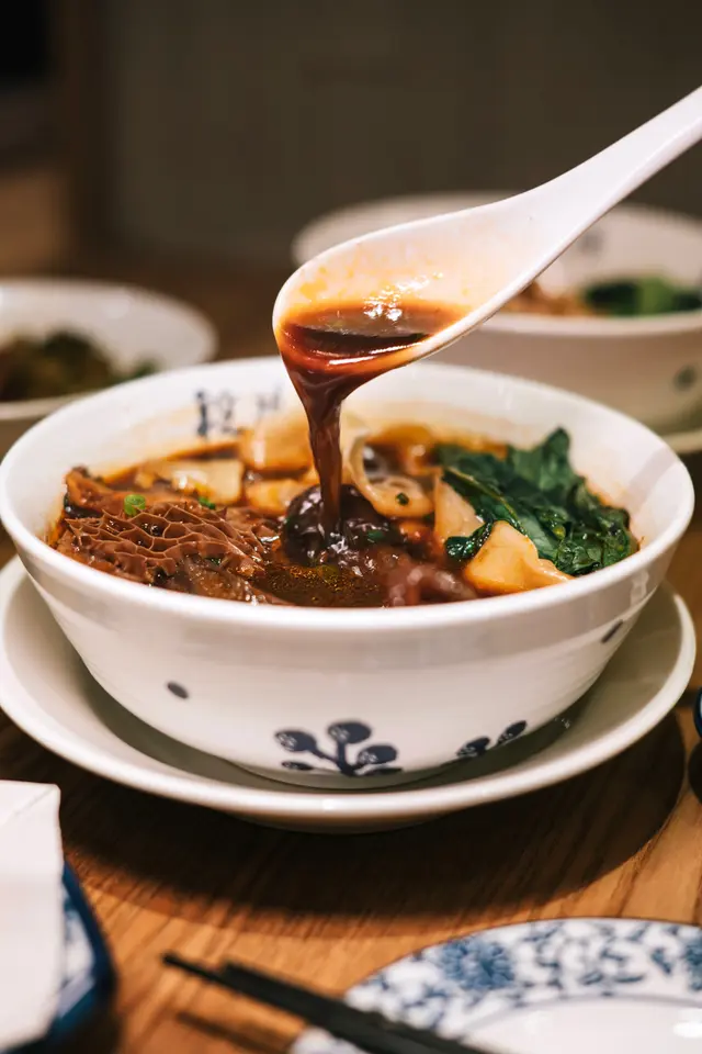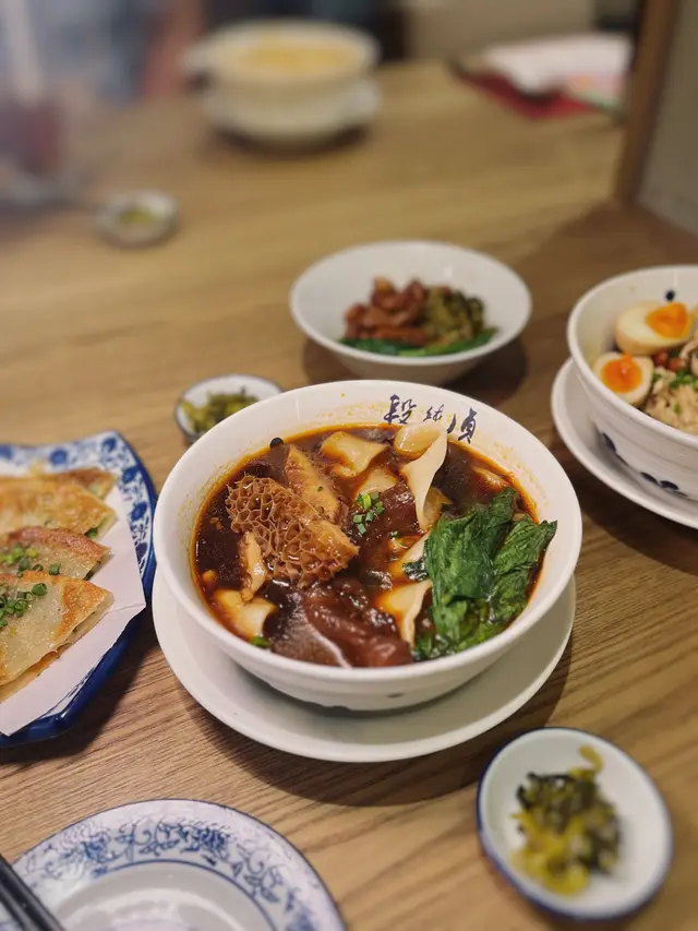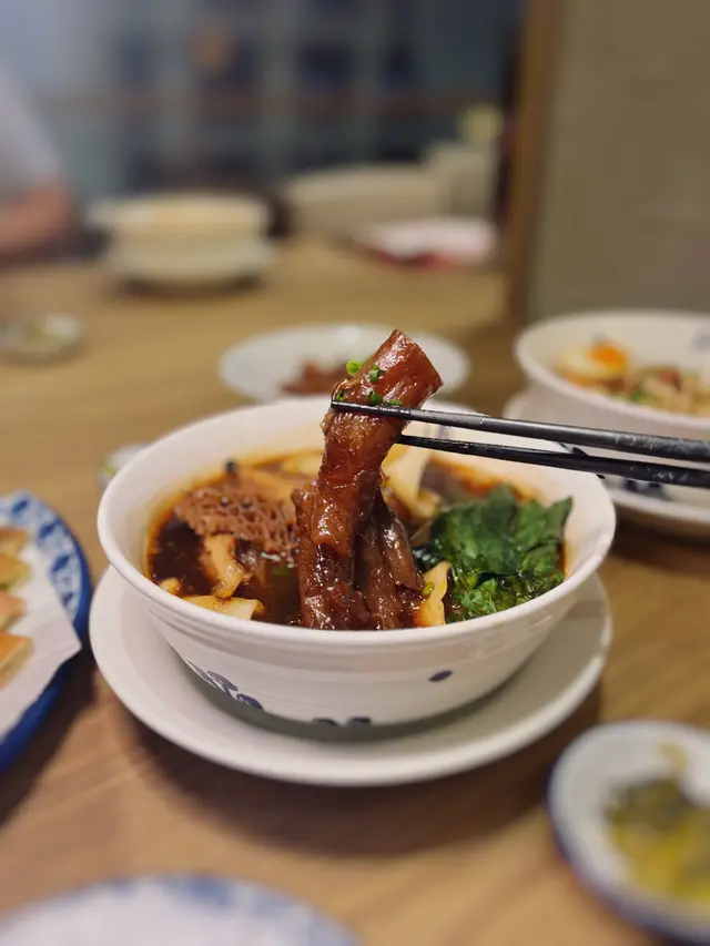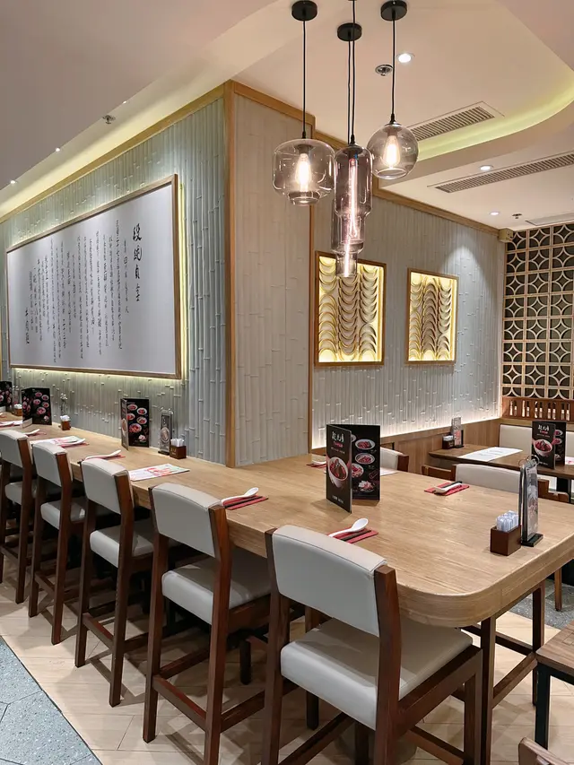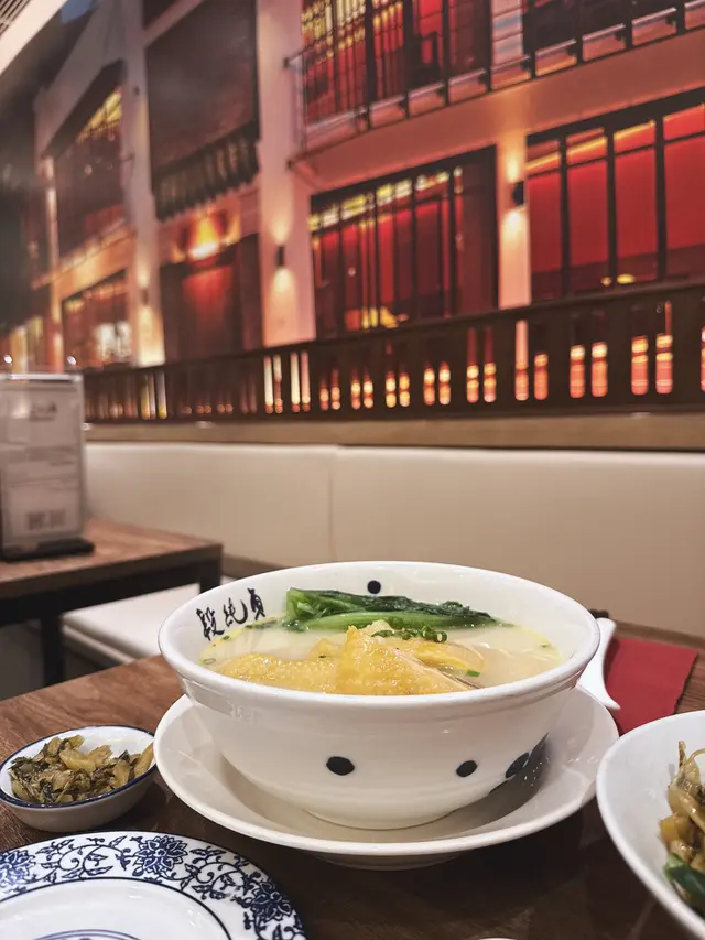 位於圓方的新店段純貞牛肉麵,以人氣台式牛肉麵見稱🇹🇼湯頭講究耗時:先以精選新鮮肥牛炸出天然油脂🐮加入23種香料與藥材🔥慢火拌炒8小時,再注入新鮮牛骨高湯細熬至超過18小時🤤呈現溫而不火、嫩而不膩的層次與甘香。店內設計糅合傳統中式與時尚質感🪵天然木材縱橫於天花🎋竹子拼接於牆身,與木地板和木質裝飾互相呼應🤍營造溫馨舒適的用餐氛圍。🌟三寶麵(腱心、牛肚,牛筋) $94牛腱心紋理分明,細膩柔韌🐮牛筋入口即帶來膠質的滑嫩與濃厚牛香🥰牛肚口感爽彈,吸附了滷汁的甘甜與香料的餘韻🍜配上寬厚有勁的手工麵,口感柔韌,掛湯效果出色,每一口都沁入牛骨湯的醇厚風味。🌟清燉牛肉麵(牛𦟌切片) $82牛𦟌切得厚薄適中🐮肉質緊實卻不失柔嫩,咬下去時滲出淡淡肉汁,細麵柔韌滑順,麵體氣孔較多,同樣易於吸附湯汁😋入口時湯頭清爽甘甜,牛肉的鮮美與蔬菜的清香交織,帶來細膩且溫潤的滋味。🌟老豆腐 $38老豆腐外觀樸實卻充滿韻味🫶🏻甘甜的滷水汁滲透外層豆腐氣孔細密,質地紮實,每一口都帶著濃淡相宜的鹹香與豆香交織💛搭配的一小撮酸菜,帶來微酸爽脆,十分開胃。🌟養生無骨紅棗黃酒雞 $78一上桌就散發著淡淡的酒香與雞湯的溫潤🍶去骨雞肉🐓吸附了黃酒的醇香與紅棗的甜美,肉質細嫩多汁。再以紅棗、枸杞與蔥花作點綴,味道清香,溫和又滋補。🌟三星蔥肉鍋餅 $48鍋餅外皮煎至金黃酥脆,咬下去蔥香四溢💚三星蔥特有的鮮甜與清脆,完美融入肉餡之中🐷豬肉餡細嫩多汁,鹹香適口,與蔥的甜味交織出豐富層次,搭配一旁的微辣醬料,更添惹味。🌟水蜜桃茉莉綠茶 $34