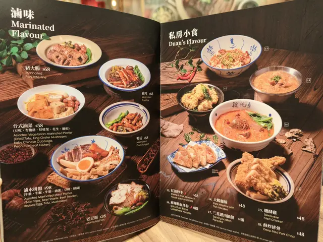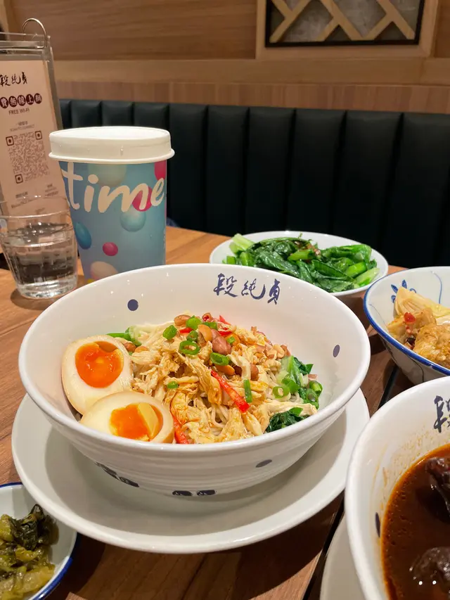 朋友和我喜歡吃台灣菜,聽聞台灣過江龍<段純貞>是一間很不錯的台灣餐廳,於是與朋友來到位於旺角MOKO新世紀廣場<段純貞>吃晚餐。餐廳位置很多,環境舒適。我們看了餐牌後,點了一份蒜醬油麥菜、兩款小菜 - 鹽酥雞和三星蔥肉鍋餅、兩份主菜 - 招牌紅燒腱心牛肉麵和台式肉燥飯及兩杯飲品- 熱茉莉綠茶和熱紫香芋泥特調。蒜醬油麥菜~油麥菜份量多,足夠兩人吃。翠綠油麥菜很爽甜,蒜醬味又香濃。鹽酥雞~鹽酥雞炸至外層酥脆,仍保留嫩滑肉質,九層塔又炸得香脆,好像吃薯片。三星蔥肉鍋餅~三星蔥是宜蘭特產,喜歡吃蔥的粉絲必選這道小菜。煎至金黃酥脆薄餅皮,包著香氣四溢的三星蔥肉餡,真是很好吃。招牌紅燒腱心牛肉麵~牛骨熬煮數小時的湯底非常濃郁,香濃藥材味,禁不住一口接著一口喝。三件厚切腱心牛肉,肉質軟腍,肉香醇厚,非常入味。選了手工麵,外形似刀削麵,麵質卻又比刀削麵厚身彈牙,有掛汁效果。一小碟酸菜,是用來提升牛肉麵味道。牛肉麵不愧是招牌菜,造得出色。台式肉燥飯~肉燥份量充足,與飯拌勻,毎一口都能吃到肉燥。肉燥肥瘦均勻,配上糖心蛋和油麥菜,非常美味。熱茉莉綠茶和熱紫香芋泥特調~服務員很友善,提問是否要減糖,讓我們意識到可調效糖份量。茉莉綠茶,綠茶味香濃;紫香芋泥顏色很美,芋泥綿密,很飽肚。兩杯飲品都很好喝。…查看更多
