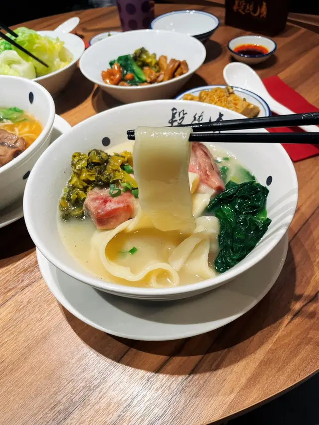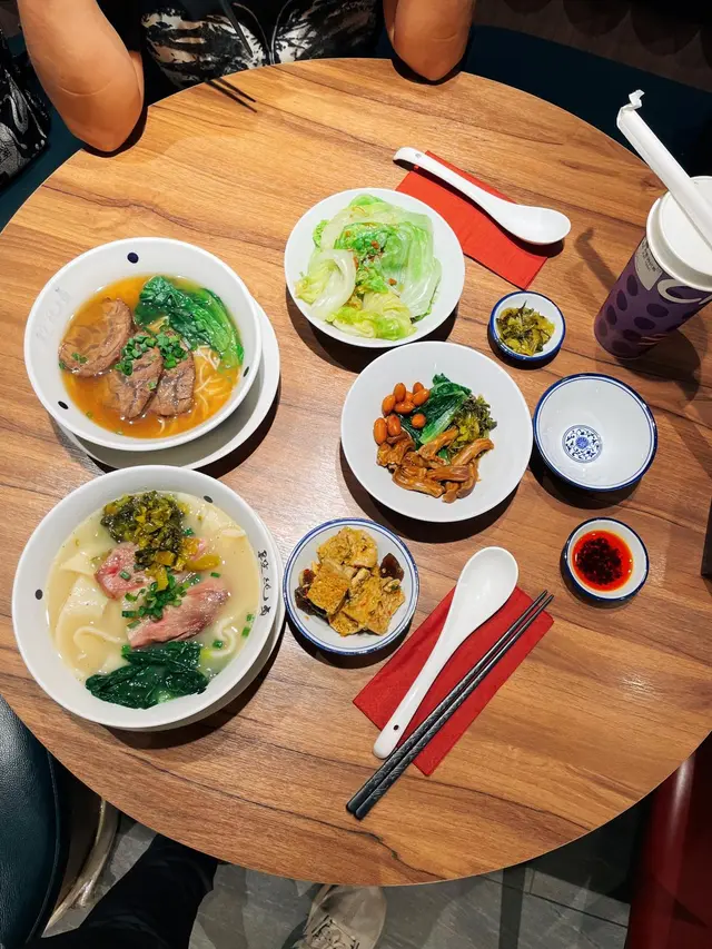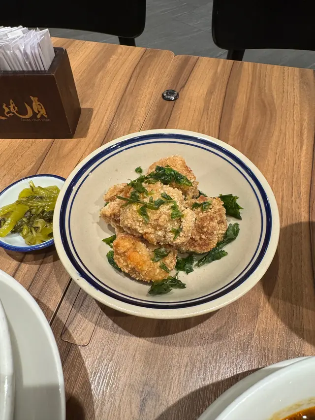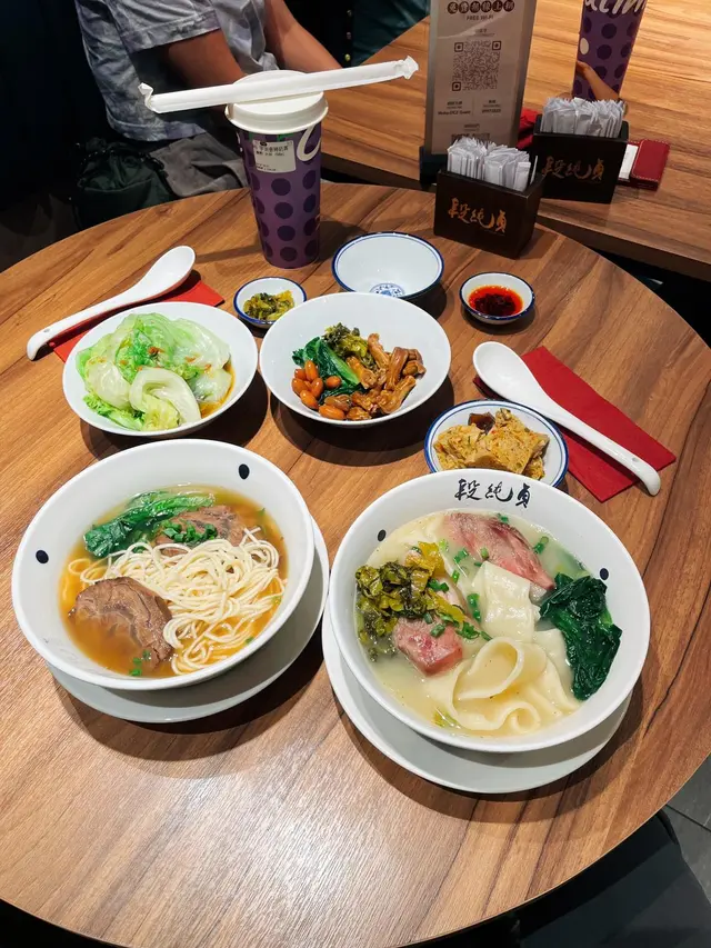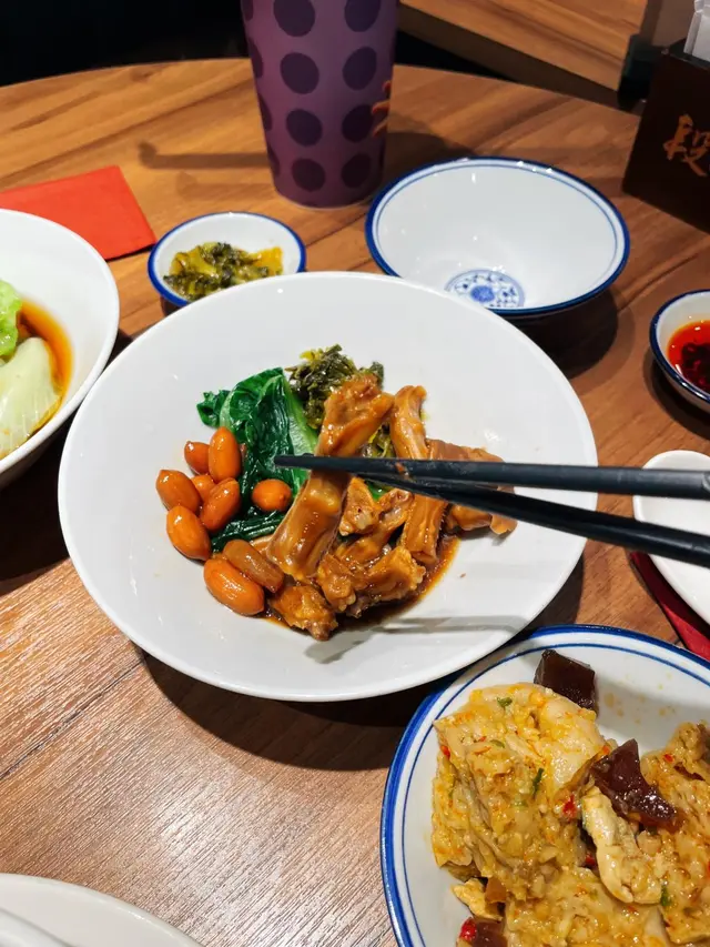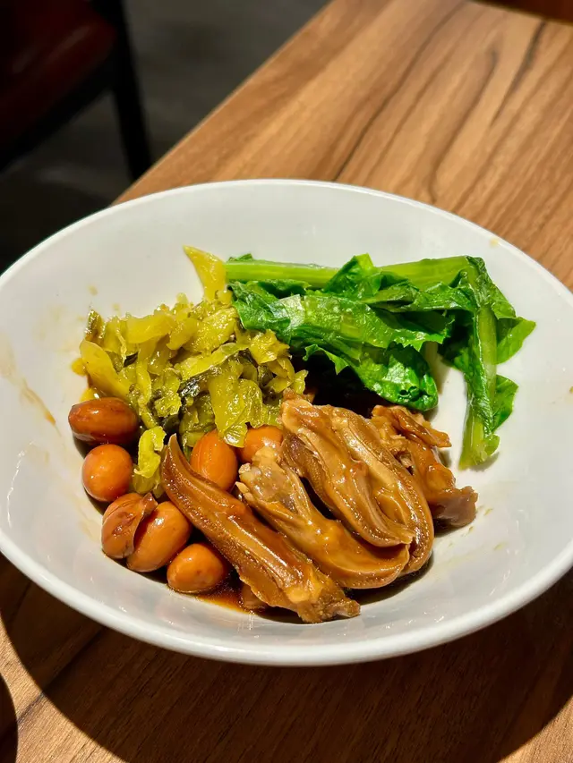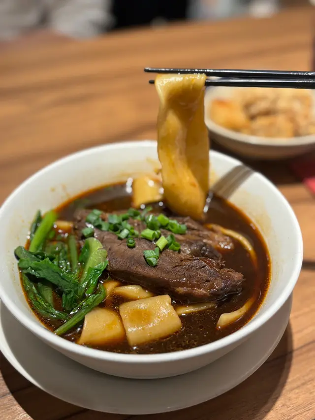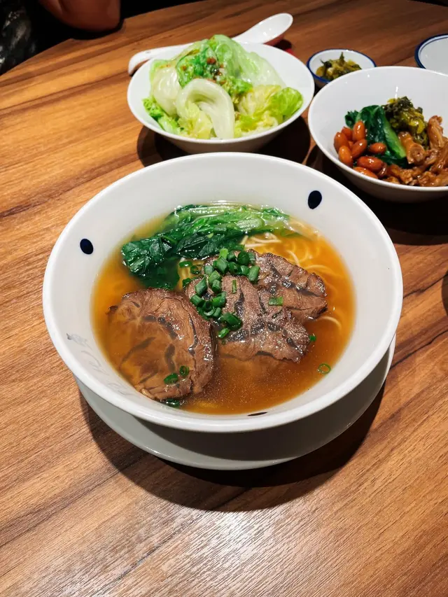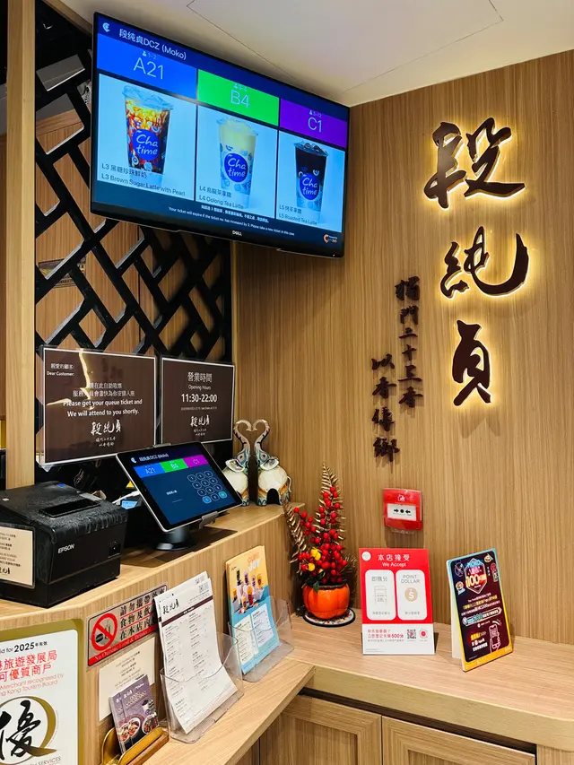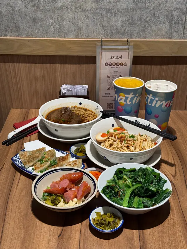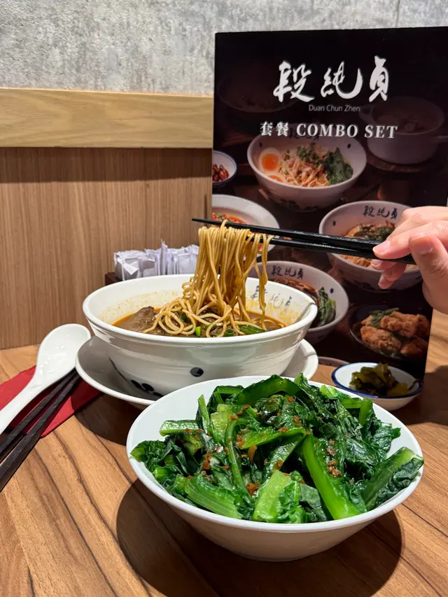 朋友和我喜歡吃台灣菜,聽聞台灣過江龍<段純貞>是一間很不錯的台灣餐廳,於是與朋友來到位於旺角MOKO新世紀廣場<段純貞>吃晚餐。餐廳位置很多,環境舒適。我們看了餐牌後,點了一份蒜醬油麥菜、兩款小菜 - 鹽酥雞和三星蔥肉鍋餅、兩份主菜 - 招牌紅燒腱心牛肉麵和台式肉燥飯及兩杯飲品- 熱茉莉綠茶和熱紫香芋泥特調。蒜醬油麥菜~油麥菜份量多,足夠兩人吃。翠綠油麥菜很爽甜,蒜醬味又香濃。鹽酥雞~鹽酥雞炸至外層酥脆,仍保留嫩滑肉質,九層塔又炸得香脆,好像吃薯片。三星蔥肉鍋餅~三星蔥是宜蘭特產,喜歡吃蔥的粉絲必選這道小菜。煎至金黃酥脆薄餅皮,包著香氣四溢的三星蔥肉餡,真是很好吃。招牌紅燒腱心牛肉麵~牛骨熬煮數小時的湯底非常濃郁,香濃藥材味,禁不住一口接著一口喝。三件厚切腱心牛肉,肉質軟腍,肉香醇厚,非常入味。選了手工麵,外形似刀削麵,麵質卻又比刀削麵厚身彈牙,有掛汁效果。一小碟酸菜,是用來提升牛肉麵味道。牛肉麵不愧是招牌菜,造得出色。台式肉燥飯~肉燥份量充足,與飯拌勻,毎一口都能吃到肉燥。肉燥肥瘦均勻,配上糖心蛋和油麥菜,非常美味。熱茉莉綠茶和熱紫香芋泥特調~服務員很友善,提問是否要減糖,讓我們意識到可調效糖份量。茉莉綠茶,綠茶味香濃;紫香芋泥顏色很美,芋泥綿密,很飽肚。兩杯飲品都很好喝。…查看更多