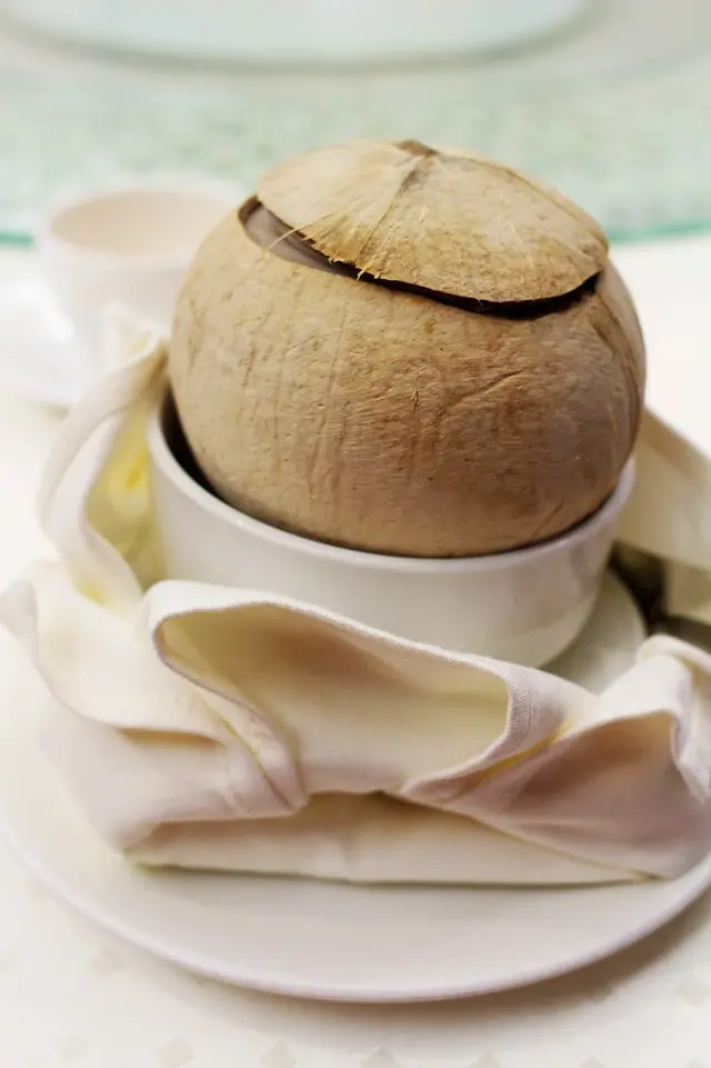 甜品有兩個選項,甜魔媽媽兩款都有吃;首先是 原個椰皇蘆薈燉鮮奶,燉鮮奶本來就細滑香甜又滋補,再加上椰皇的香氣,以及清爽的蘆薈,味道與層次都很豐富,好喜歡的~