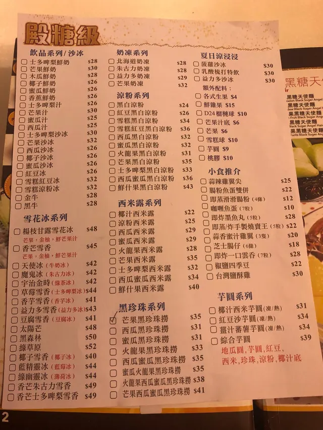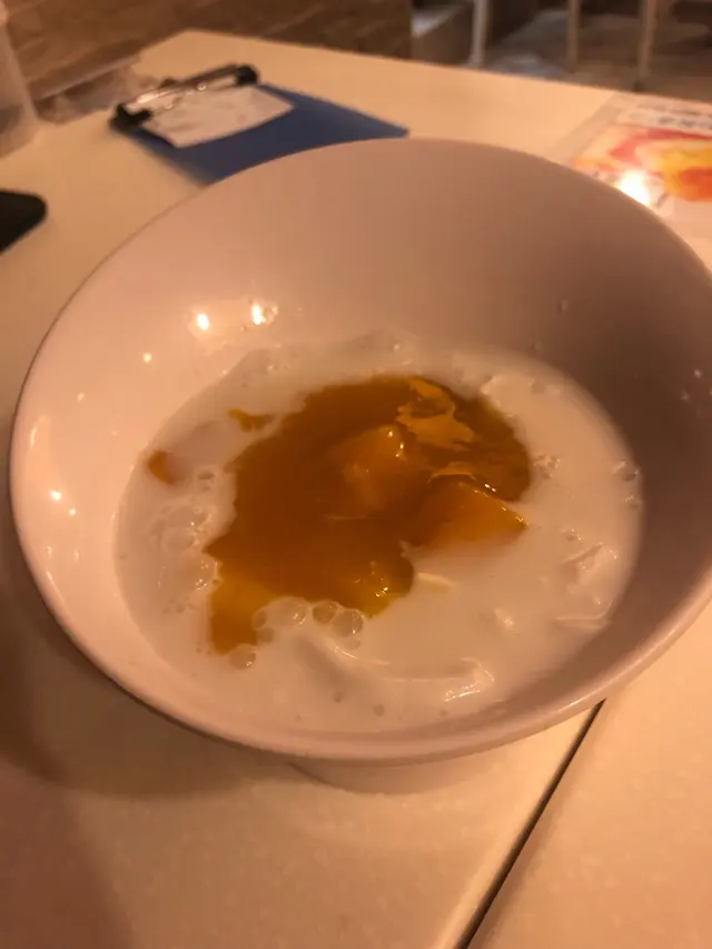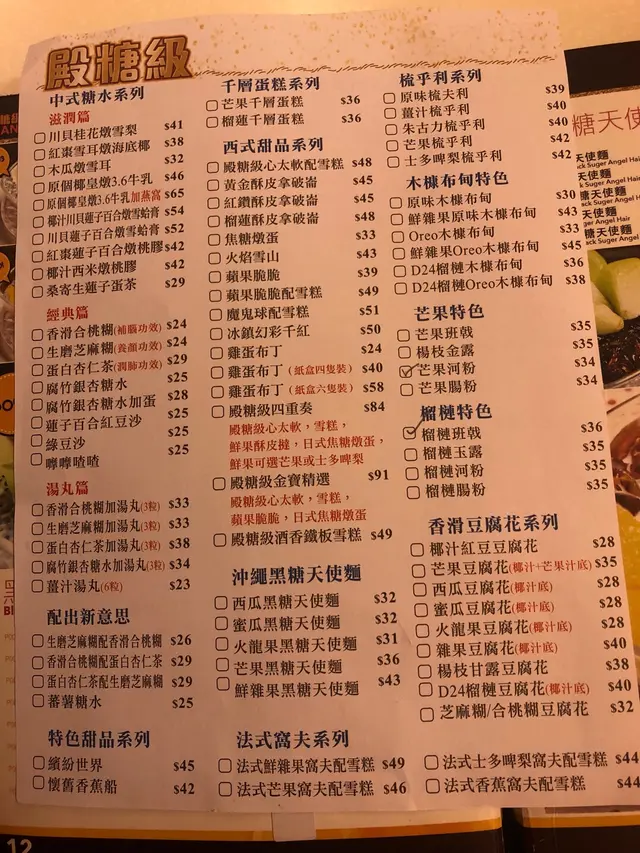 宵夜食甜品、糖水,是香港人的飲食生活之一。好多時,出外用餐後,係屋企睇完電視劇後,間唔中都會心血來潮,一家人落街去食碗糖水。這一次,就是一家人在尖沙咀吃完晚飯,回到大埔後決定再下一城。我們的目標就是以前叫大埔舊墟,現人人稱為翠怡花園的一帶尋找糖水鋪,就在停車場內,我們發現這《殿糖級》啱大家的味道,就把車泊在門口,一家人開心地食糖水。一坐下,大家都被兩款千層蛋糕吸引住了,其中的芒果千層蛋糕,甜味適中,芒果的味道也甜。一層薄薄的 pancake,再加一層夾有芒果的 cream。很香,很甜。而且,爆 cream 的感覺也是令人感滿足的。另一個是榴槤千層蛋糕。口感一樣,但香味同果味就完全不同了。榴槤沒芒果來得甜,但口感卻比較滑。同樣,一口鮮果,一口爆忌廉,愛榴槤的話,一定感覺到好。糖水類的,其中一個是芒果黑珍珠撈。食落,其實同西米撈一樣,只是 "黑珍珠" 吃起來比起西米爽有彈力。不過,美中不足的就是芒果不夠。楊枝甘露算是一個唔錯的出品。這一個,芒果反而多了,柚味亦足夠。足料,味道偏向甜,感覺唔錯。阿女喜歡飲益力多,所以我們點了一個益力多奶凍給她。結果,她吃了一口放棄了;阿仔吃一口也放棄了;太太試一口,我也試一口,都放棄了。天氣熱,口乾乾,於是我要了一杯芒果沙冰。濃濃芒果汁,其一半是被冰凍了成為沙冰。味道上又甜又冰涼,是幸福的甜味道。兒子也要一杯,不過他不要冰,而是單純一杯芒果汁。味道同樣是非常甜,此外,因為是純芒果汁,果味更濃,感覺更幸福。總結,這是幸福的一個甜品之夜。幸福的原因,不只是因為甜品好食,而是能夠一家人,開開心心地吃一個晚上,冬天會感覺到家庭幸福的 warm,而在夏日,感覺到的,就是家庭幸福的爽。…查看更多