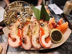 正好明天係公眾假期,可以好好犒賞自己一下。帝京向來以高質食物聞名,果然冇失望。BOOK唔到繁忙時間,估唔到8:30都好FULL,一入到餐廳,即刻QR CODE點返個刺身拼盤先,赤海蝦、甜蝦、赤貝、北海道鮮帶子、油甘魚、三文魚、泰式虎蝦、蜜柑鯛薄切,樣樣都好新鮮,特別係鱘魚籽醬同北海道鮮帶子,鱘魚籽鹹香,帶子又滑又嫩,食落口感真係一流。最啱我心水嘅係波士頓龍蝦,啖啖龍蝦肉,搭配特製醬汁,真係好享受。蒜蓉粉絲蒸蟶子王,蟶子新鮮得嚟又多汁,蒜香味配上粉絲,簡直係完美搭檔!仲有避風塘炒蟹,用嘅係新鮮蟹,香辣味十足,非常惹味。壽司方面,海膽拖羅鱈魚干手卷,海膽滑溜配上鱈魚干,口感好豐富!還有牛油果蟹肉最中餅,牛油果同蟹肉嘅搭配,味道好得意,細細件食多幾件都無負擔。仲有一品料理嘅美味,燒香草羊鞍同醬燒牛肉都好正!羊肉香氣四溢,牛肉又嫩又滑,明太子玉子燒嘅口感柔滑,真係好好味。總括來講,帝京呢個海鮮任食每一道菜都真係用心之作。下次有機會,我一定會再來探索多啲美味!…查看更多